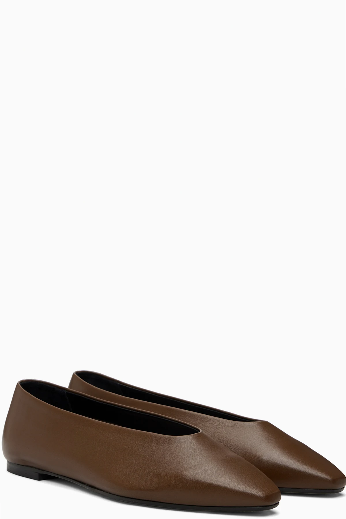Aeyde Brown Betty Square-Toe Ballerina Flats