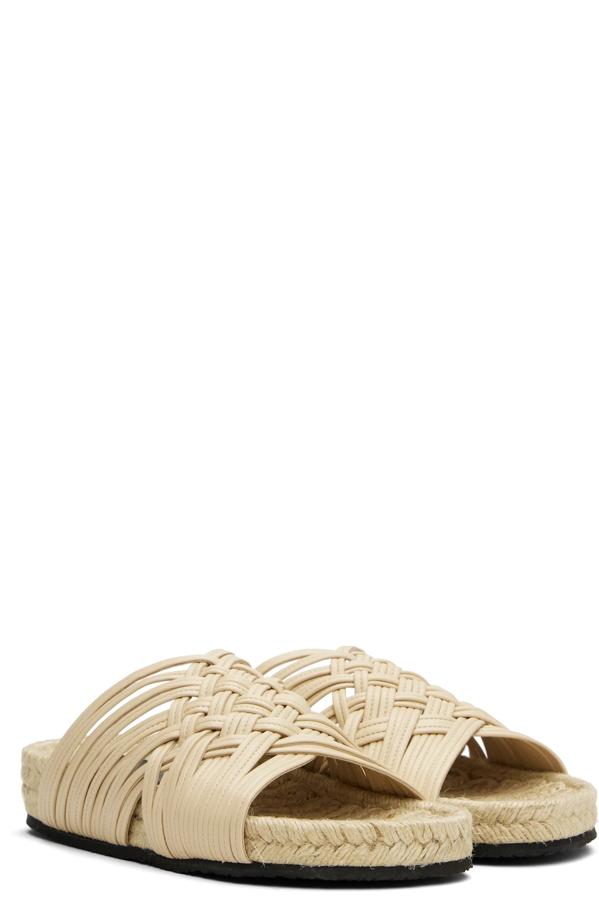 Woven jute flat sandals in beige.