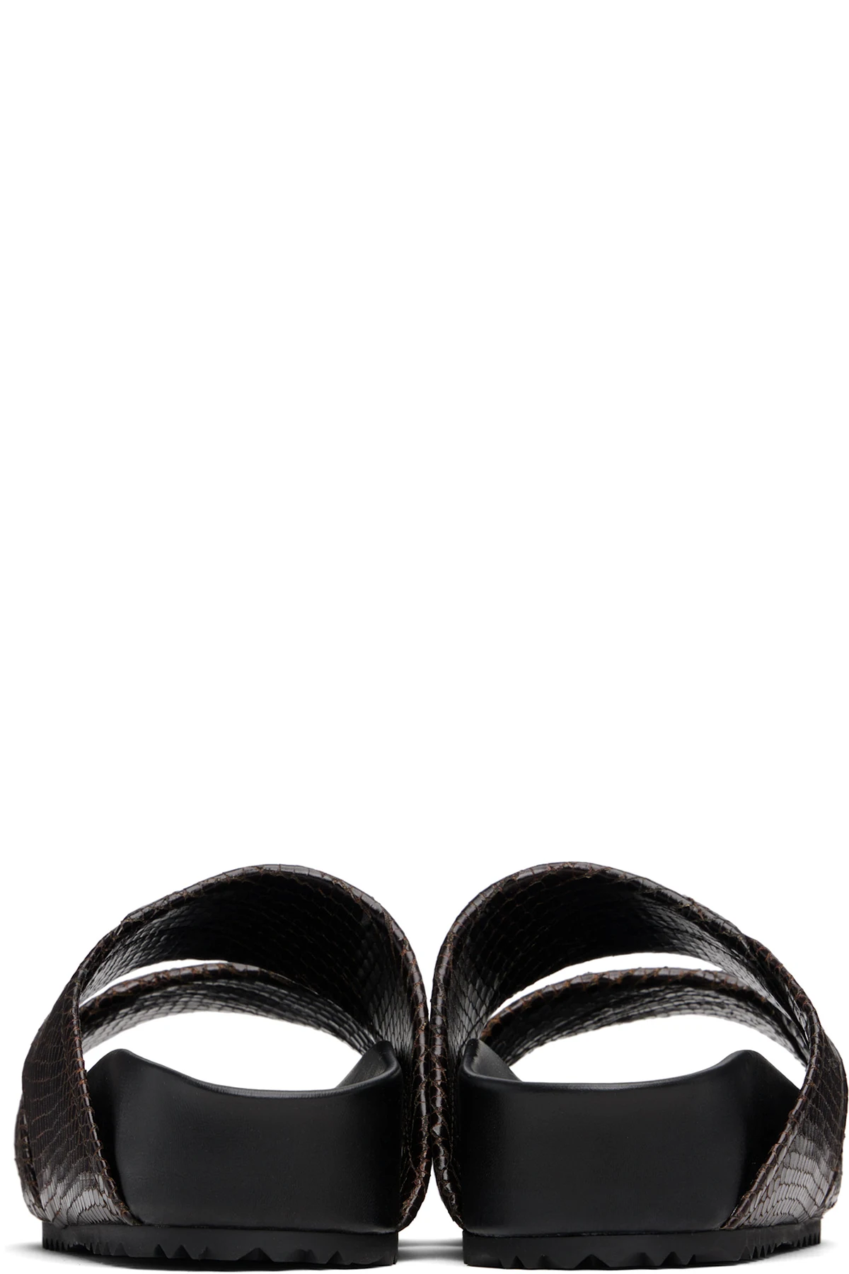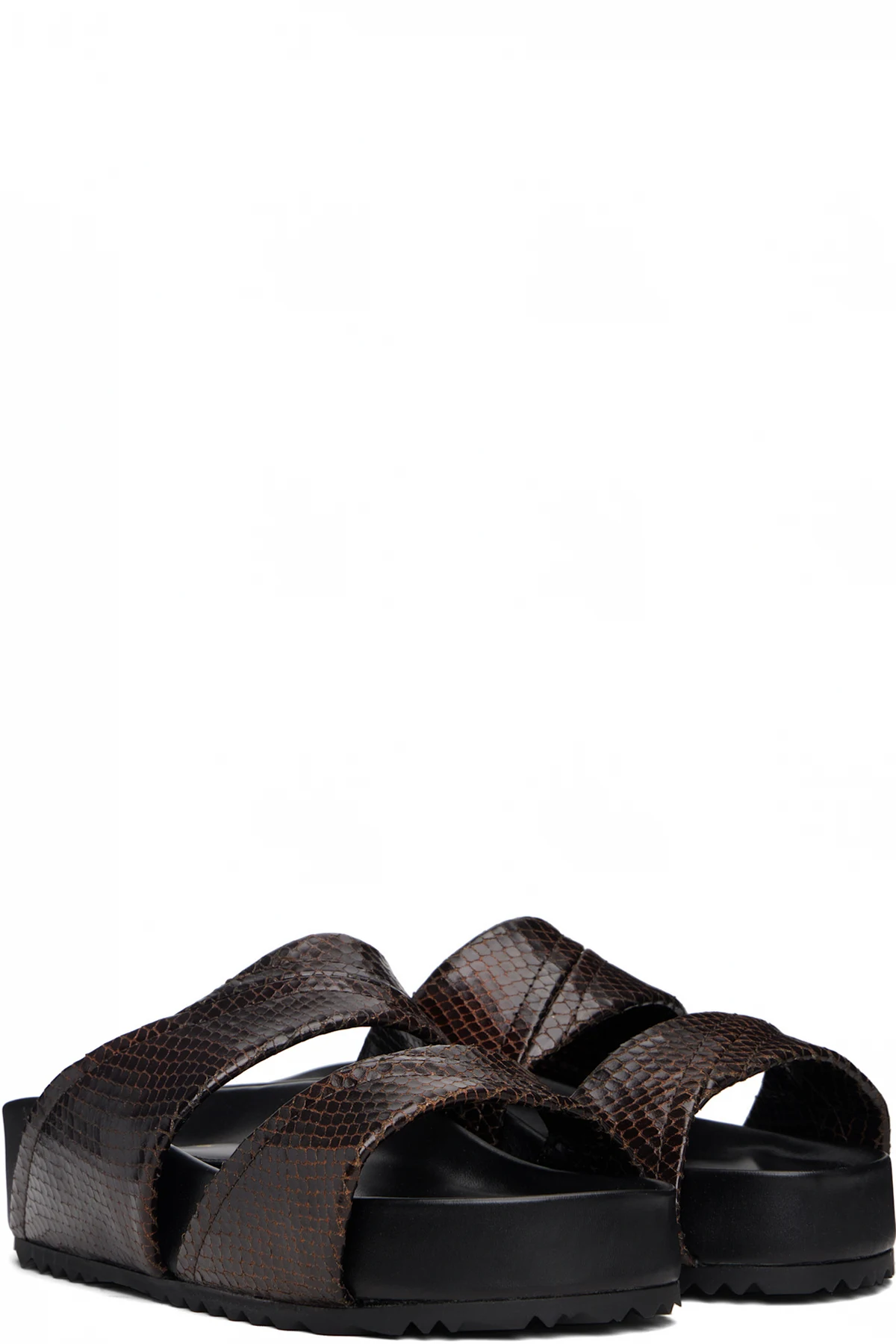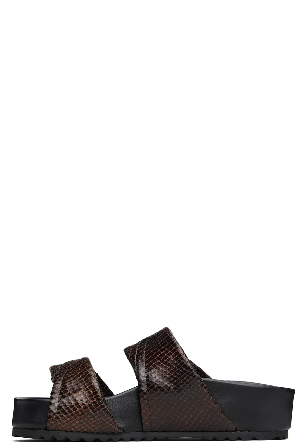 Snake-embossed leather slip-on flat sandals.