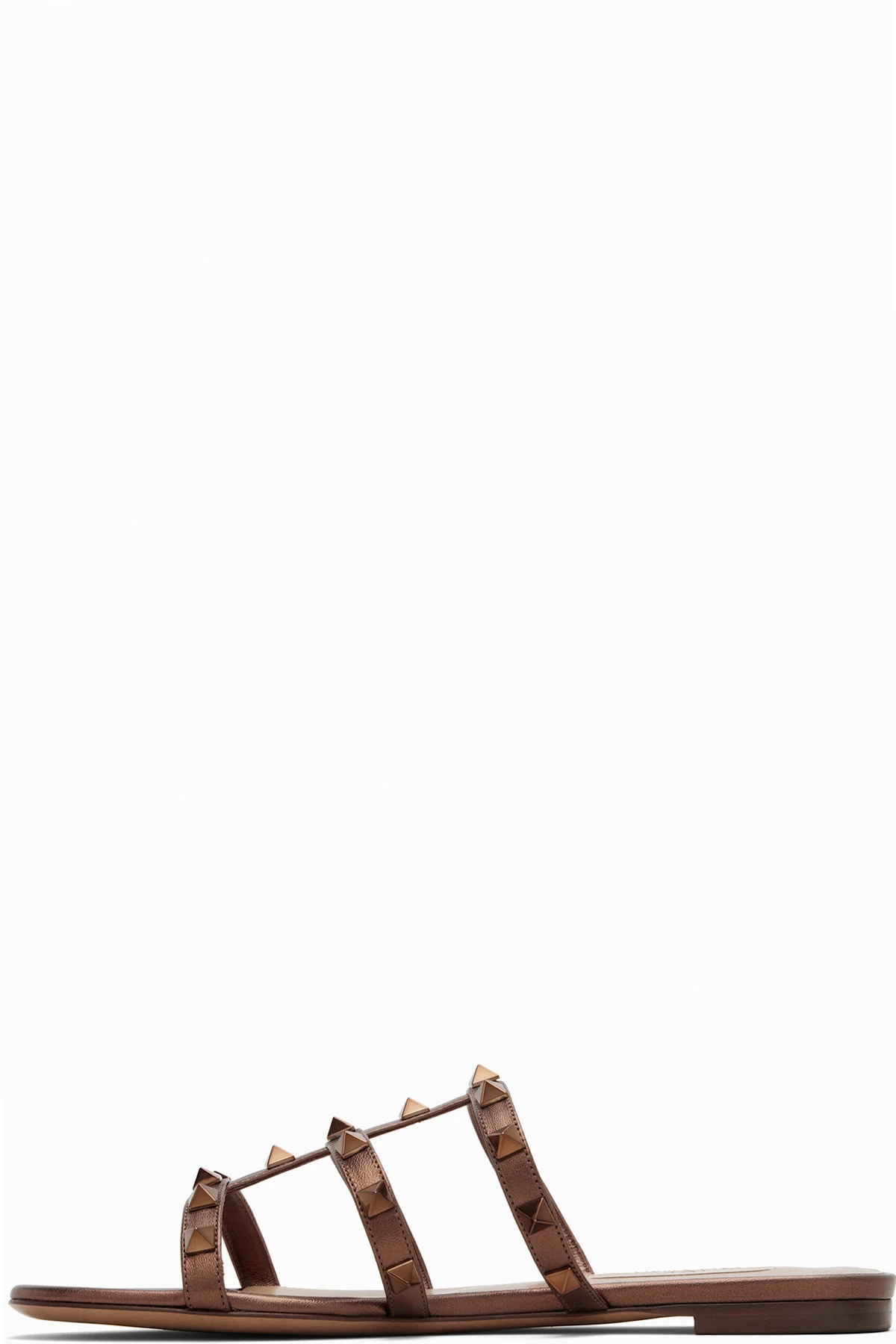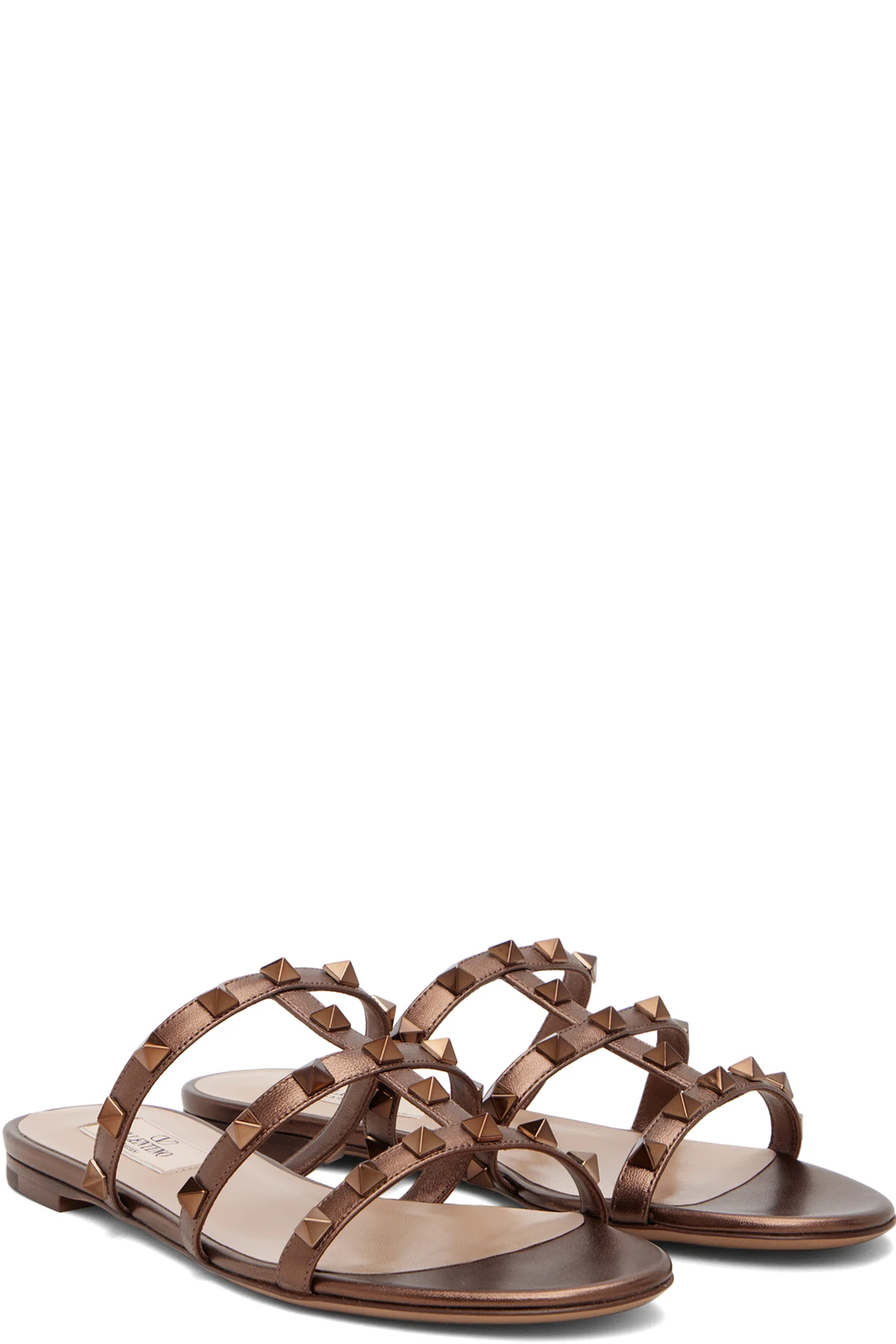 Valentino Garavani Bronze Rockstud Flat Metallic Nappa Slide Sandals