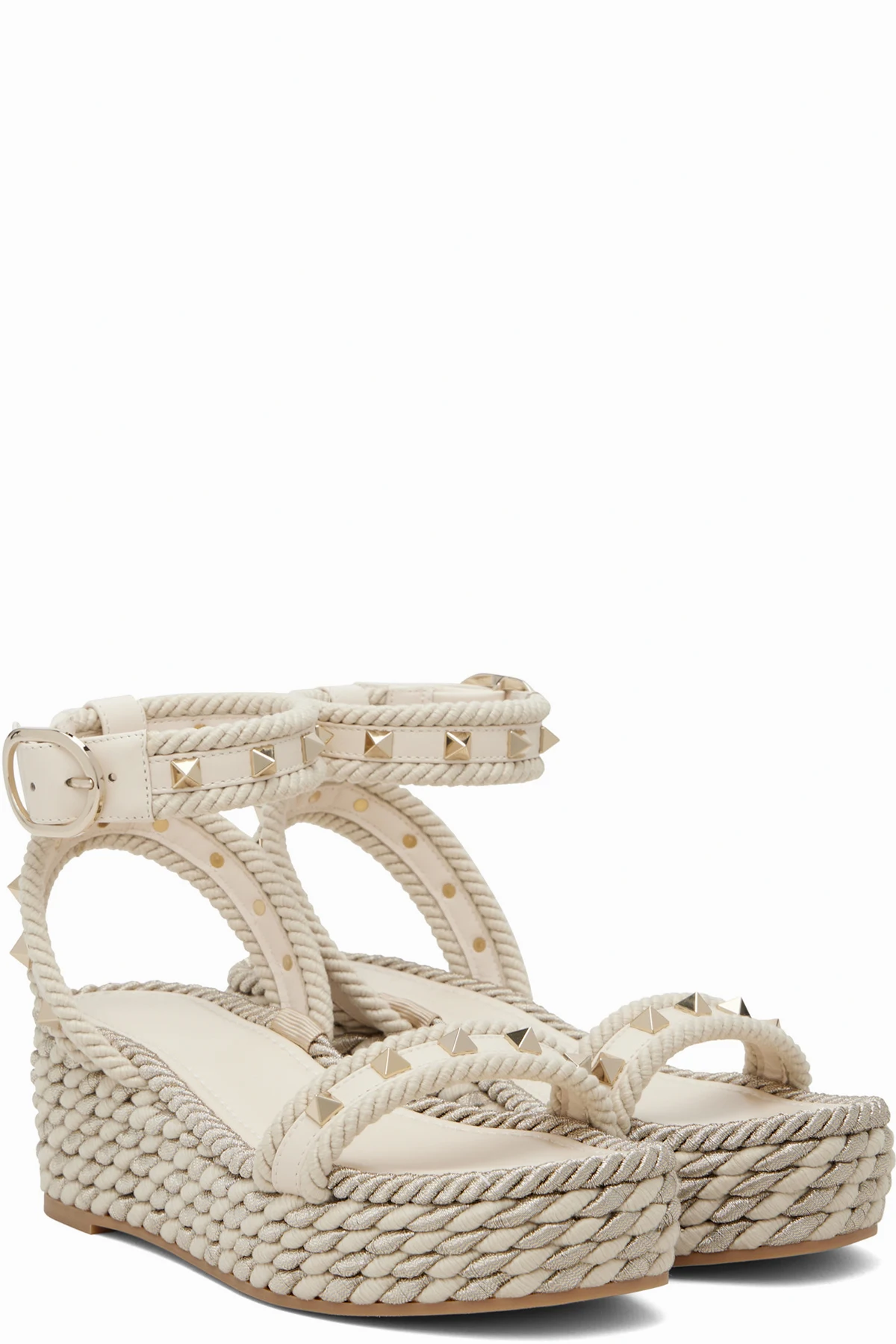 Valentino Garavani Off-White Rockstud Flatform Sandals