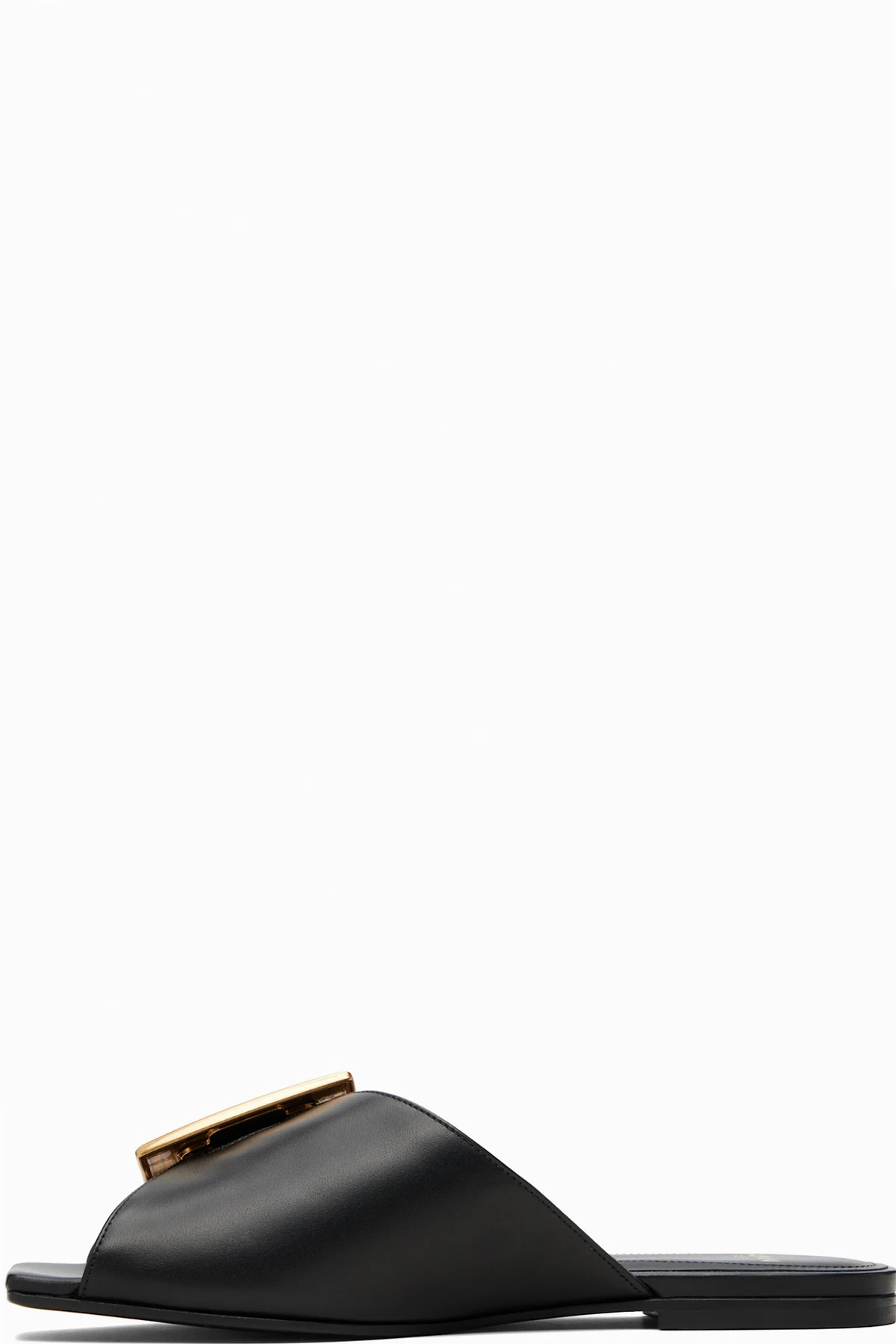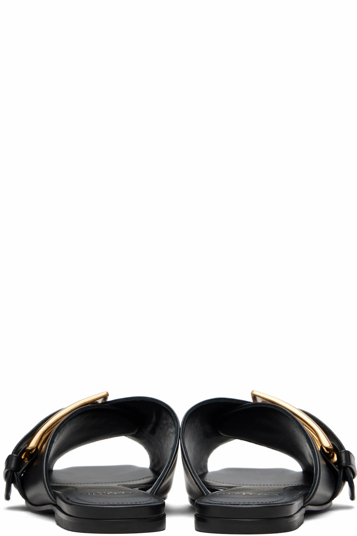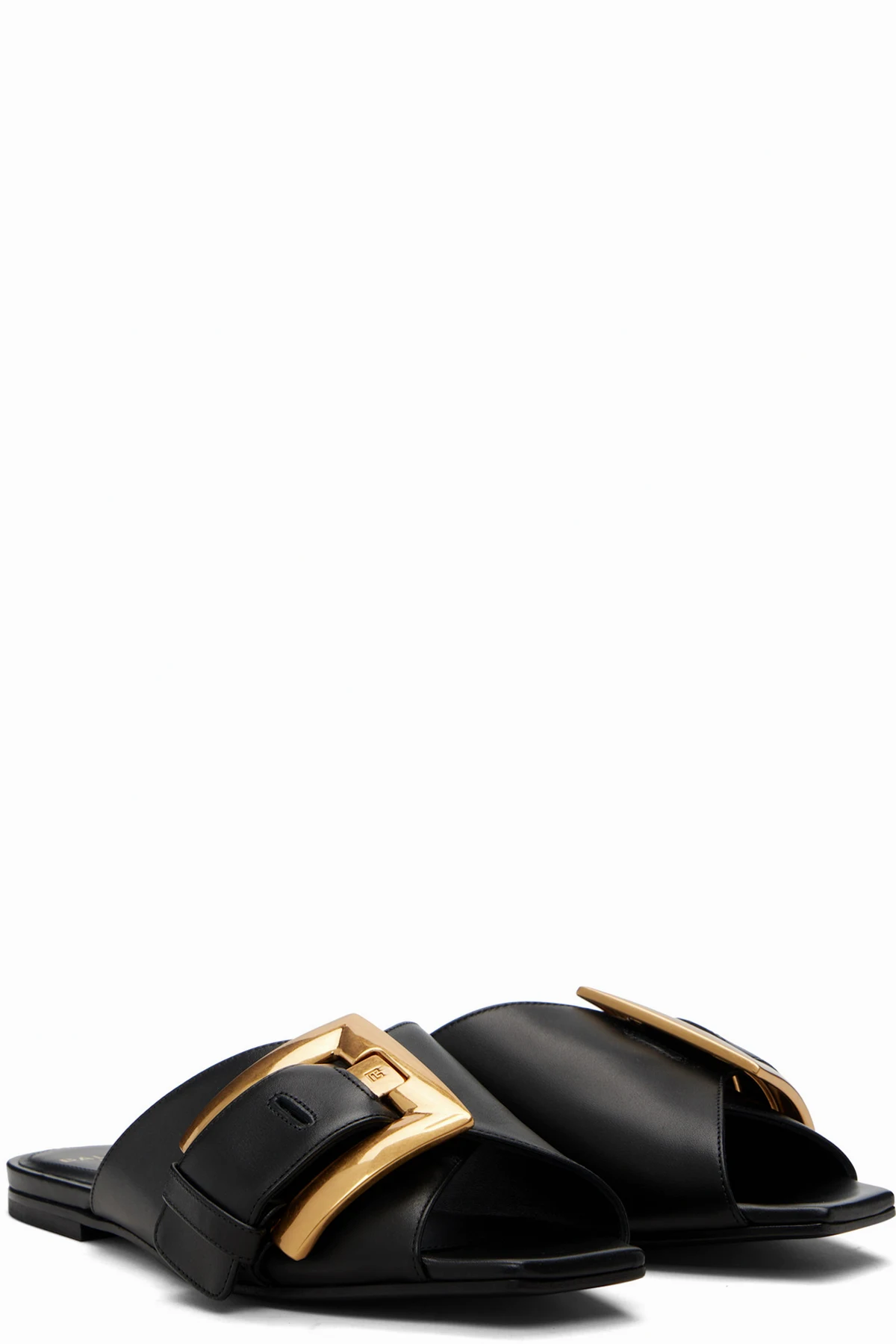 Balmain Black Anthem Flat Calfskin Leather Sandals