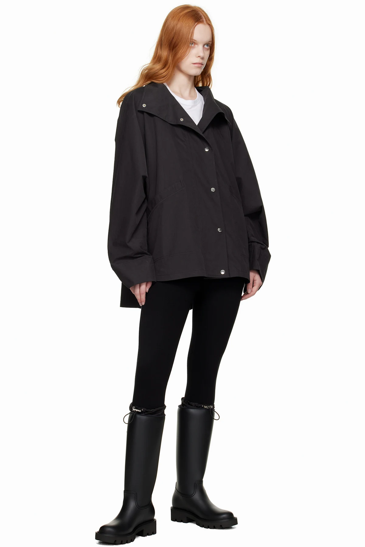 · Bungee-style drawstring at taffeta collar
