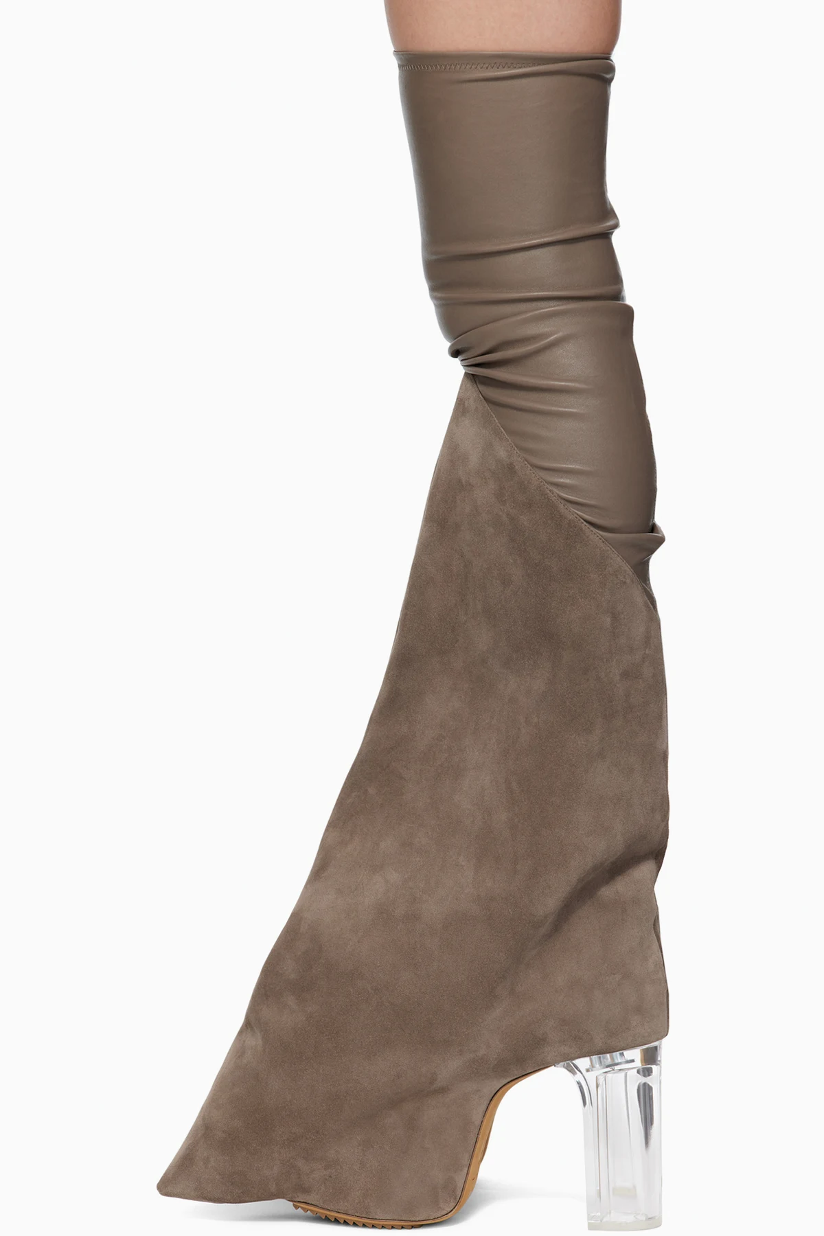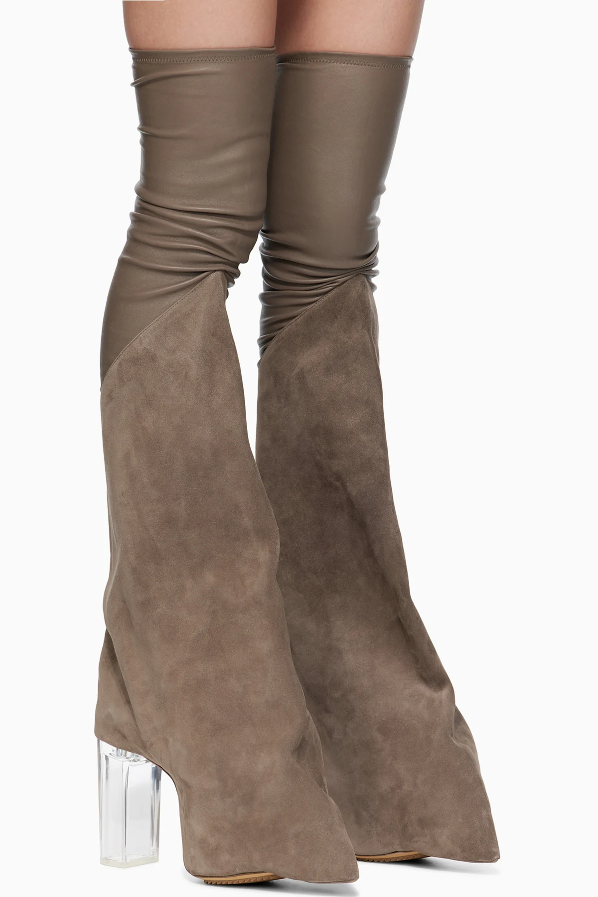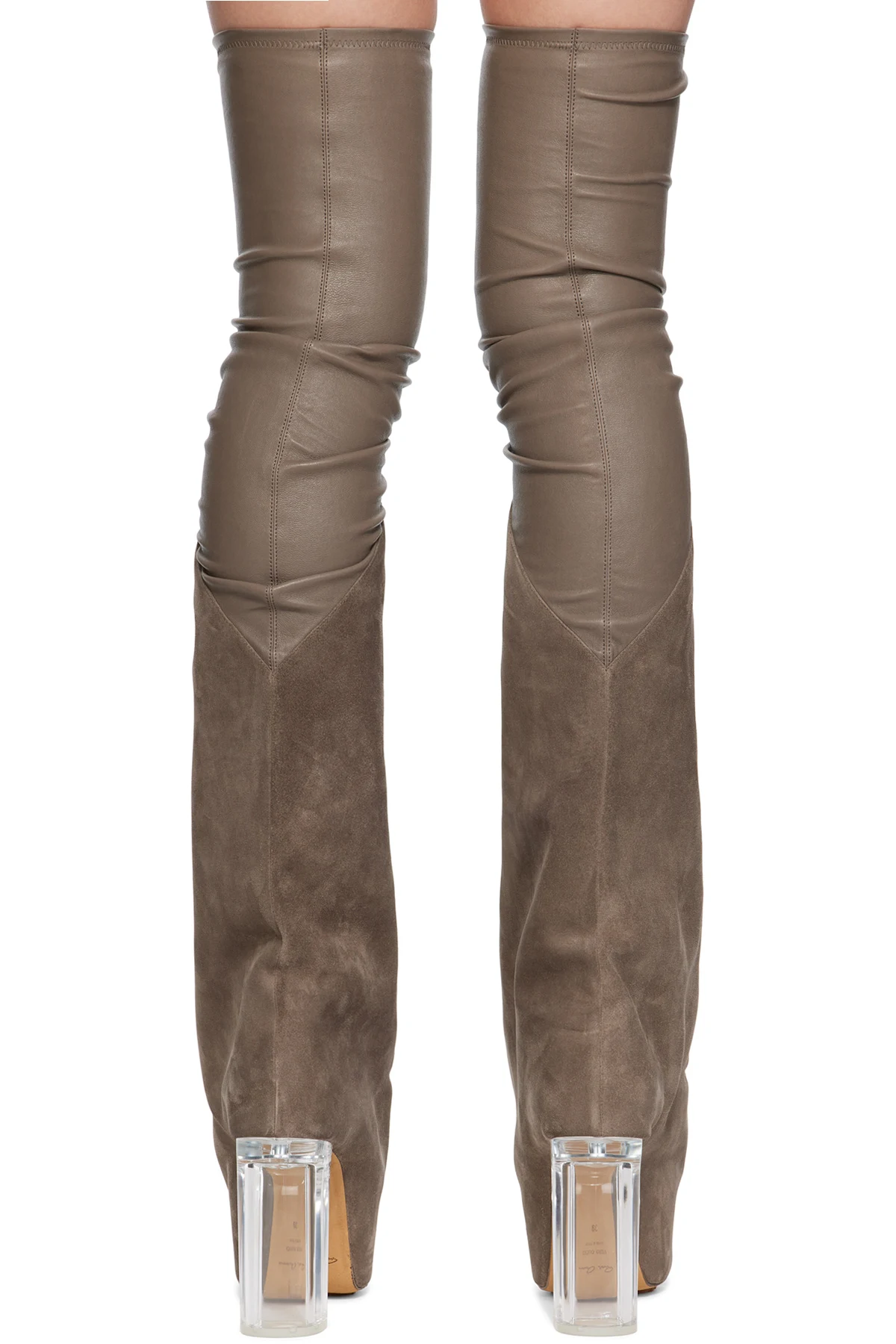 Thigh-high stretch grained lambskin and calfskin suede boots.