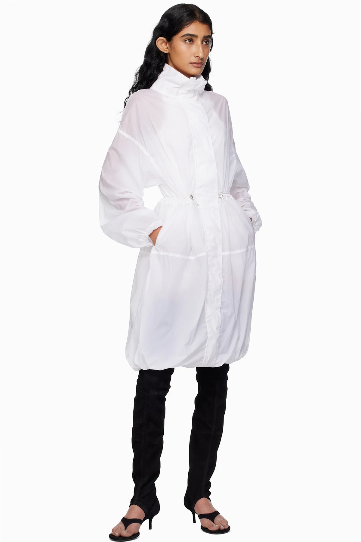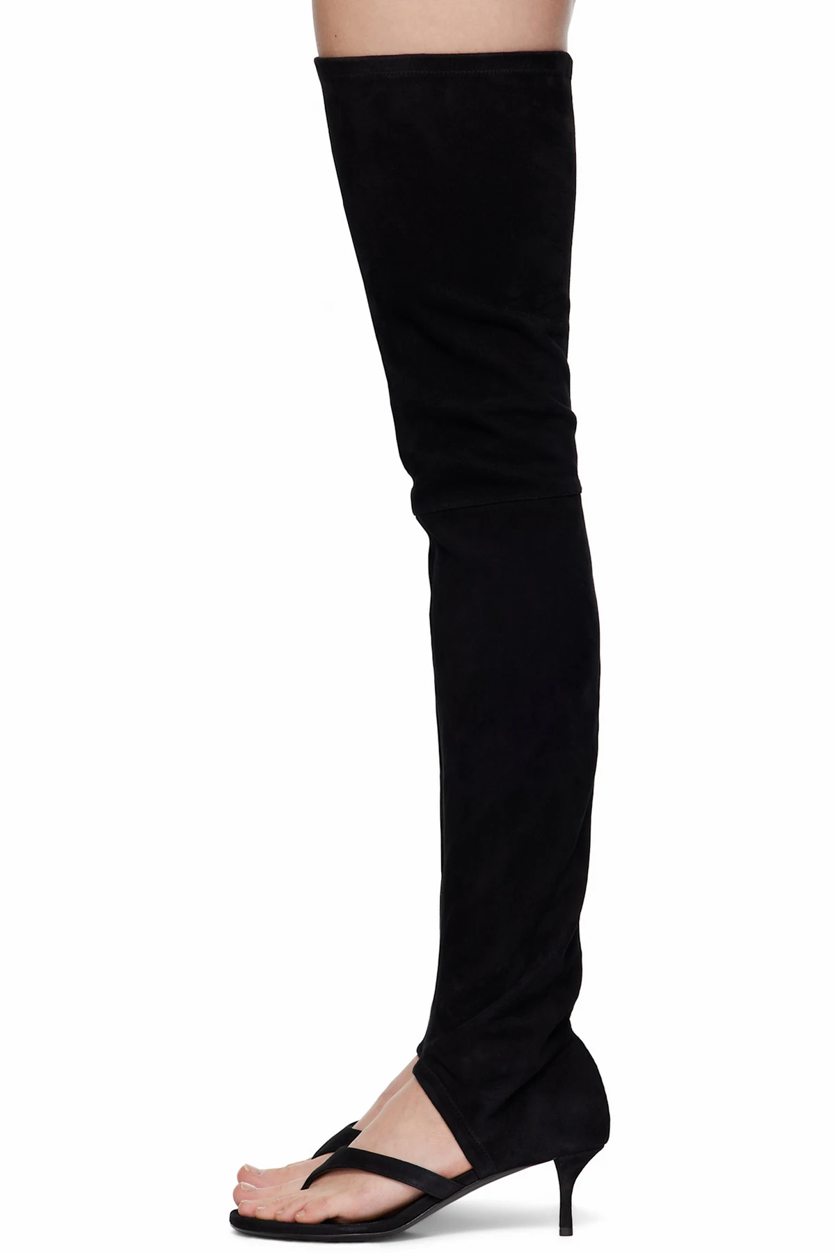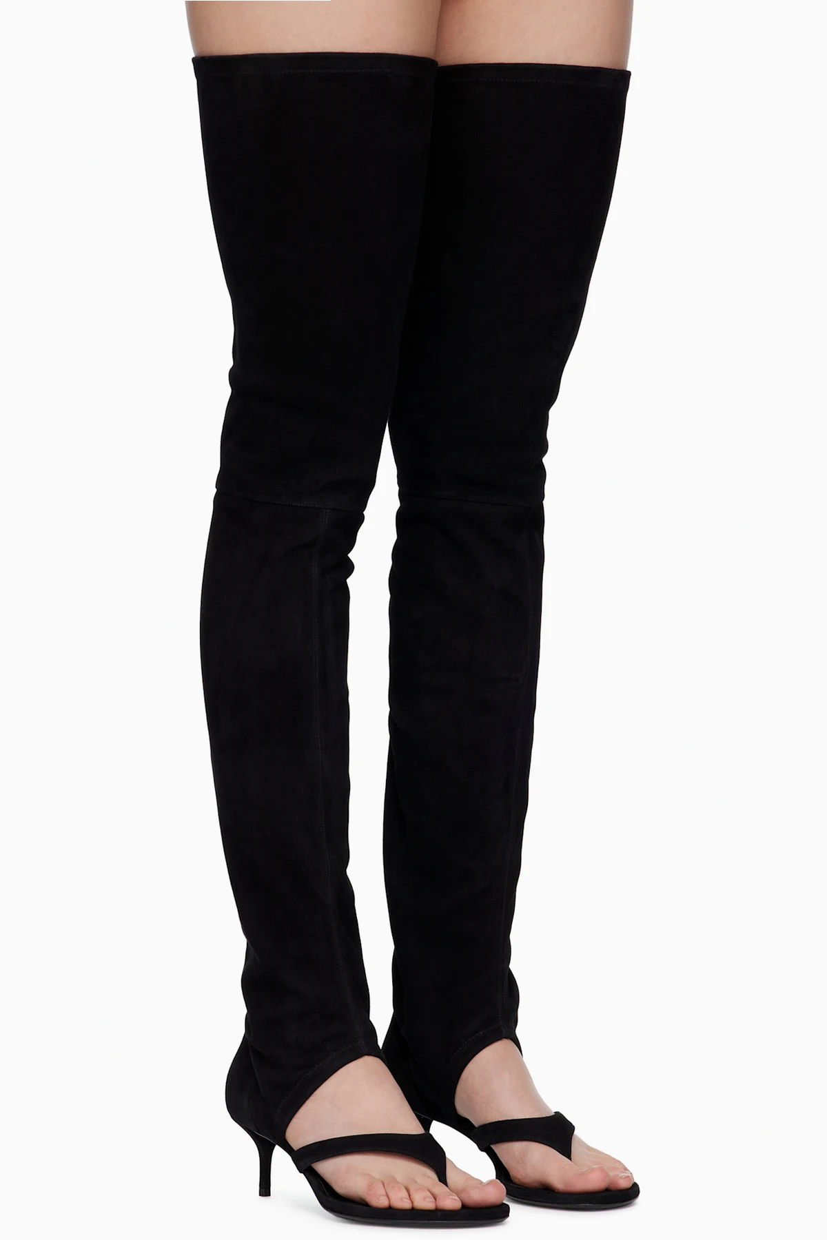 Thigh-high stretch goatskin suede boots.