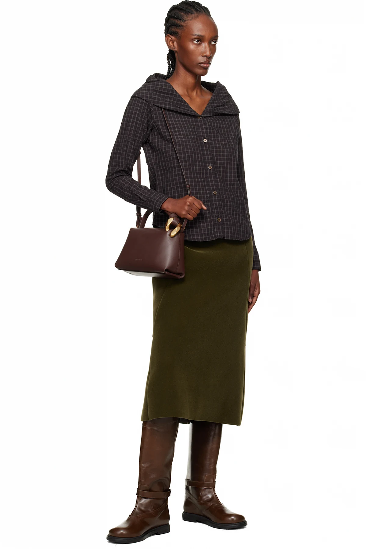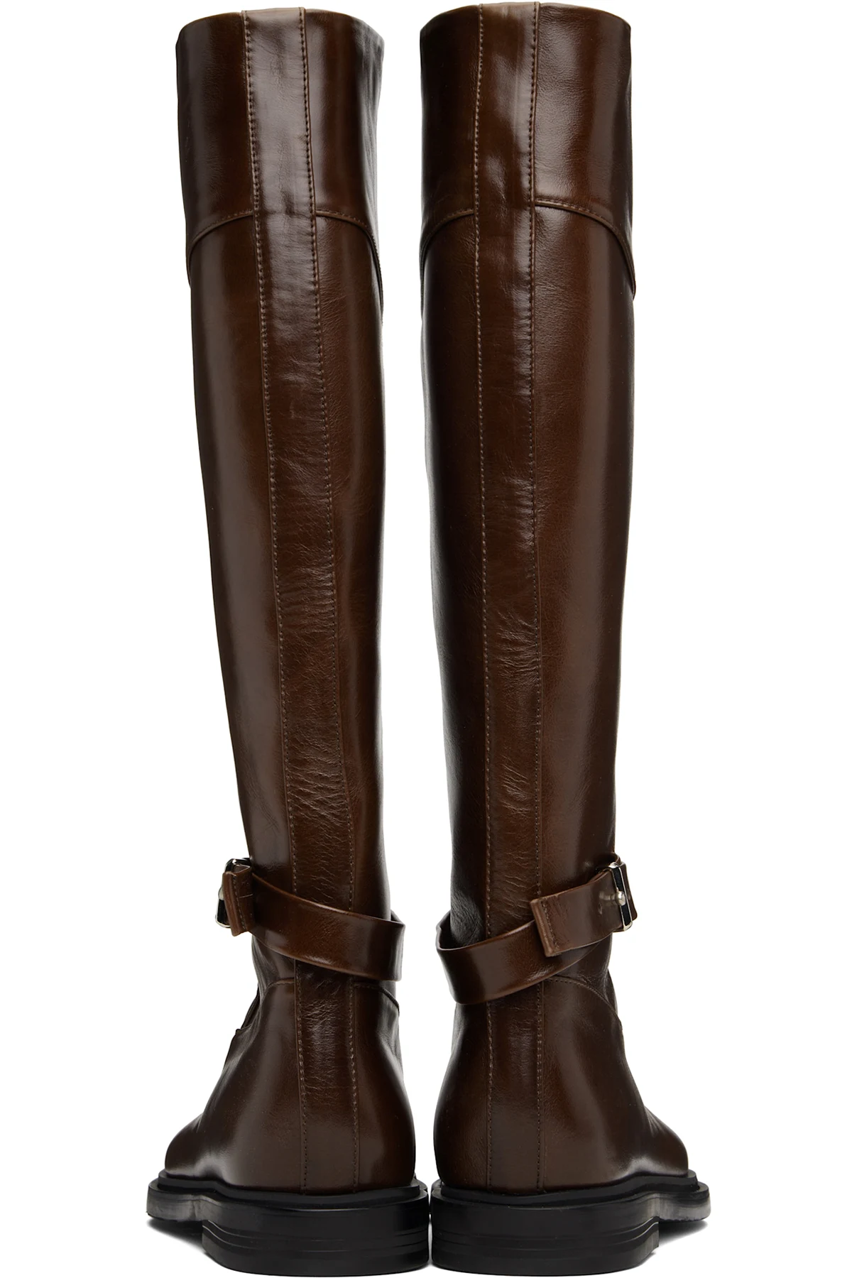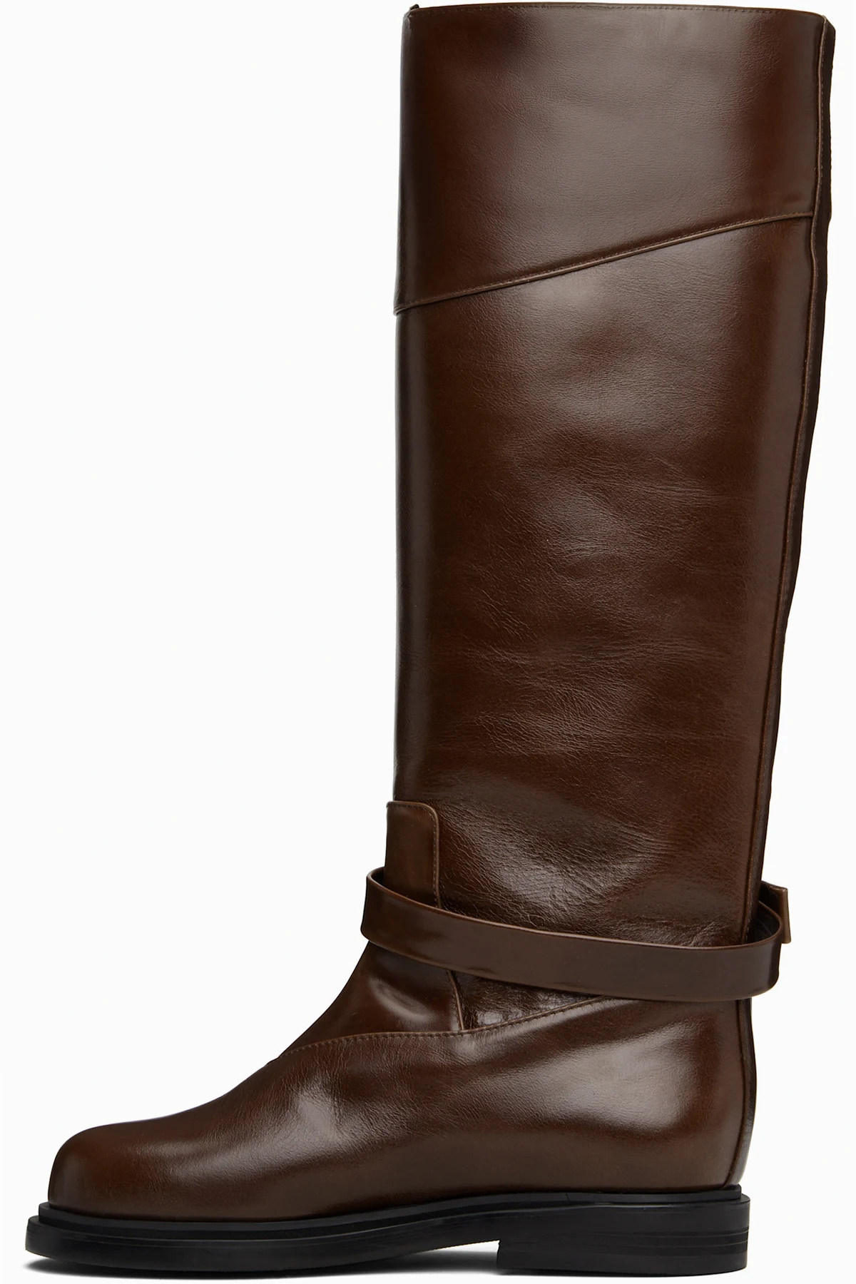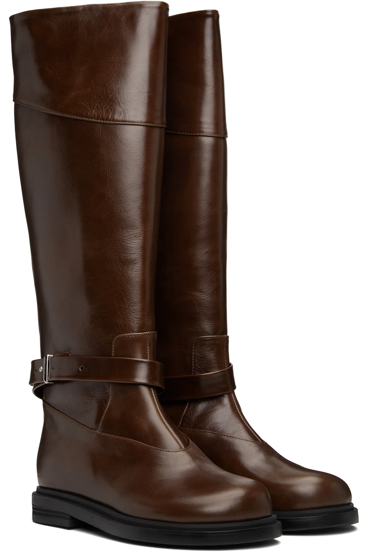 Knee-high buffed leather boots.
