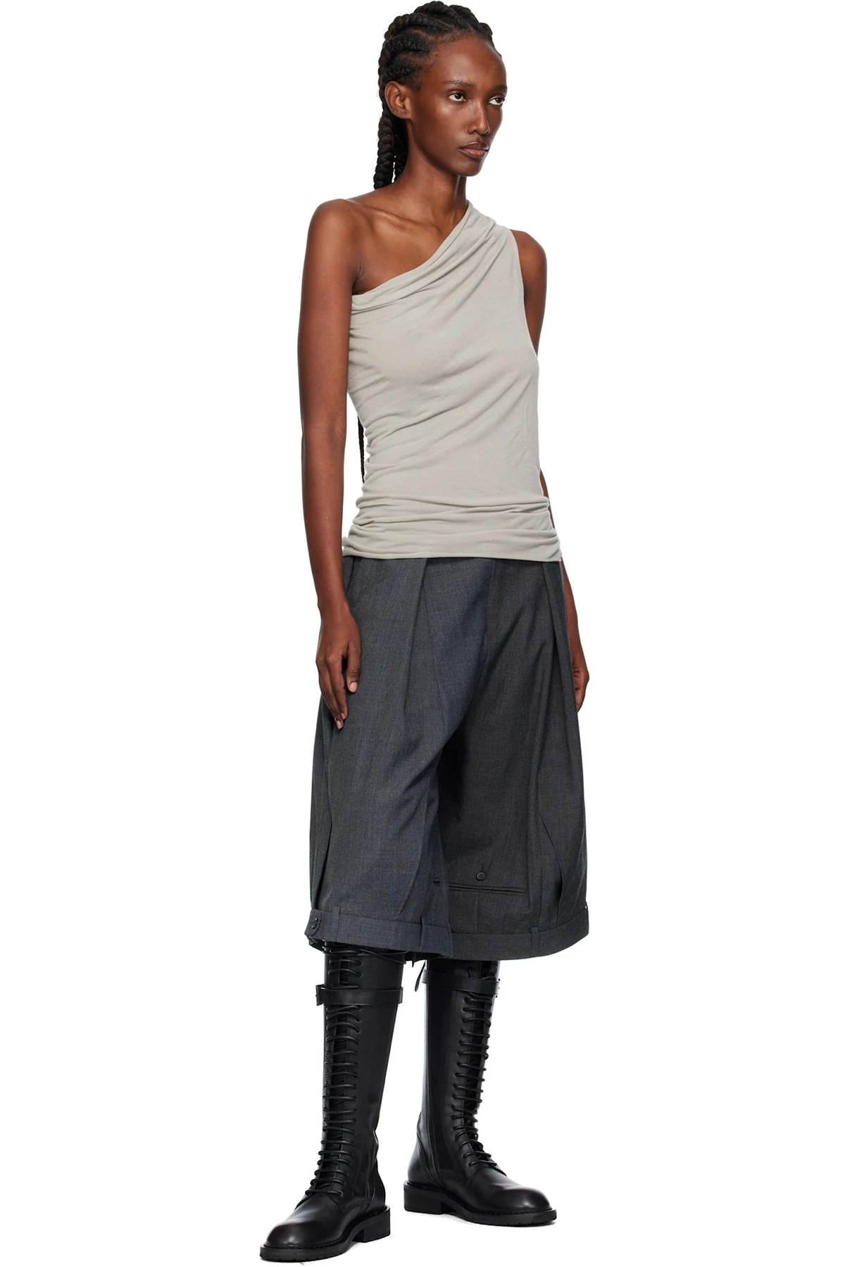 Knee-high grained leather boots.