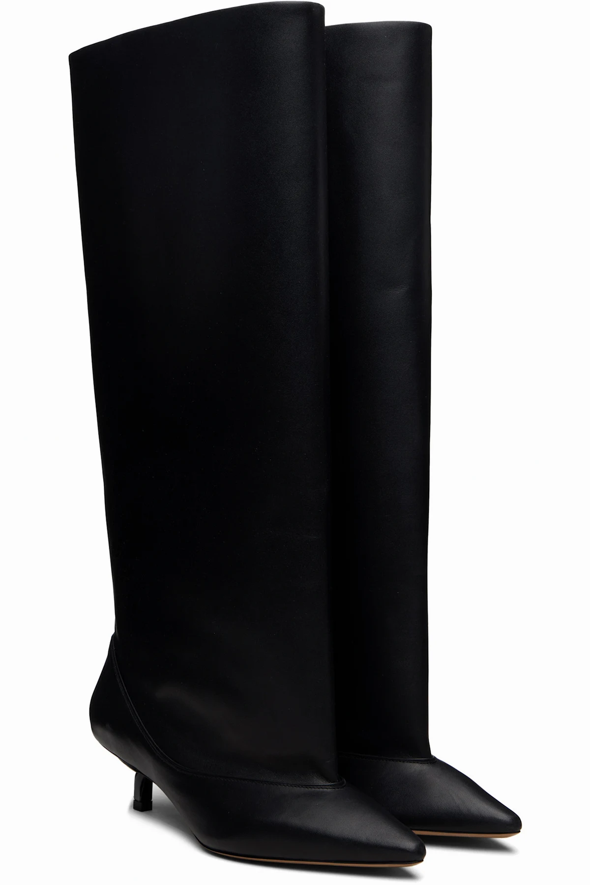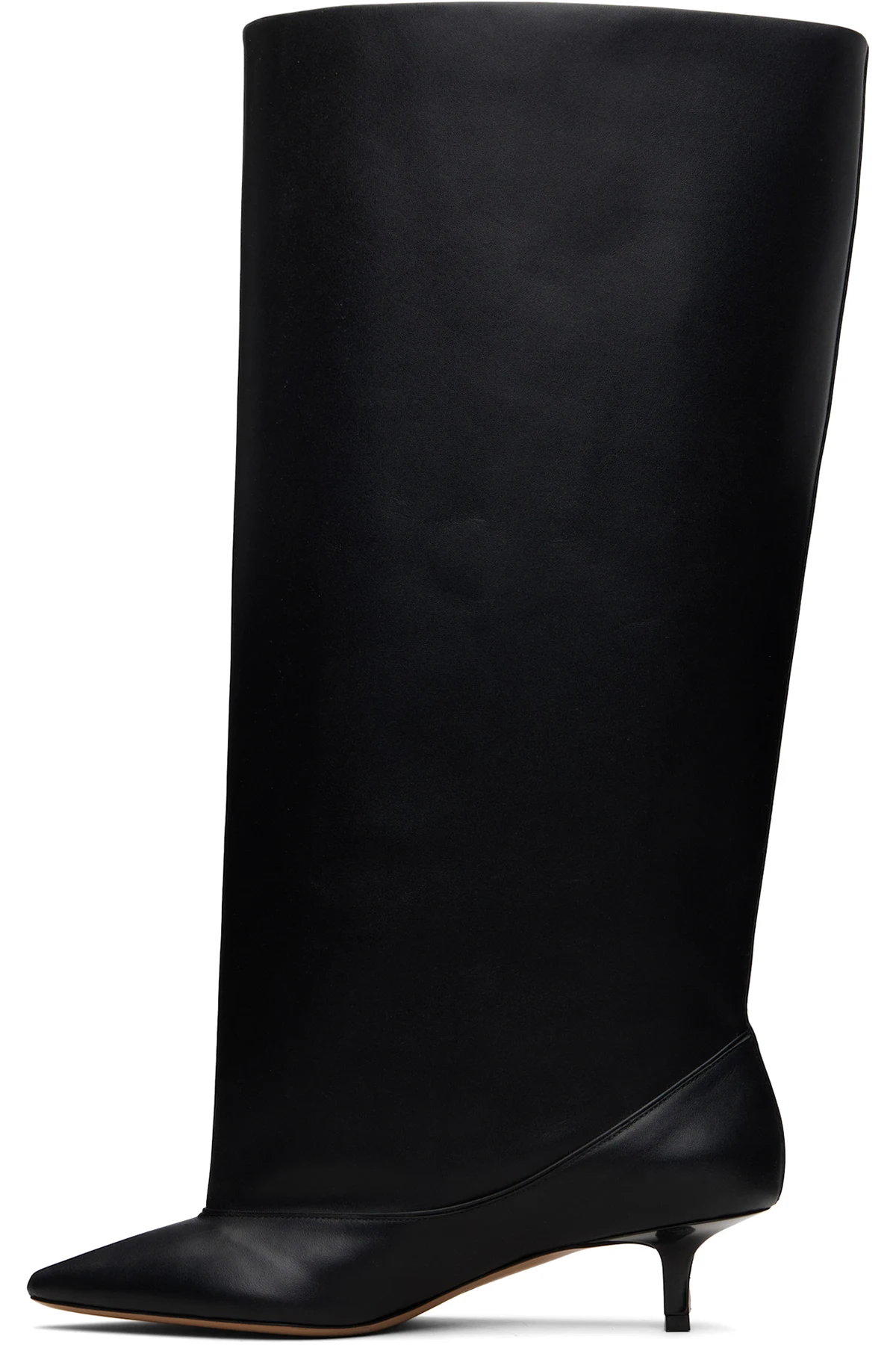 Knee-high grained calfskin boots.