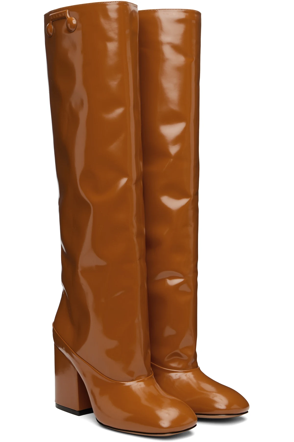 Marni Brown Leather Trunkaroo Knee-High Tall Boots