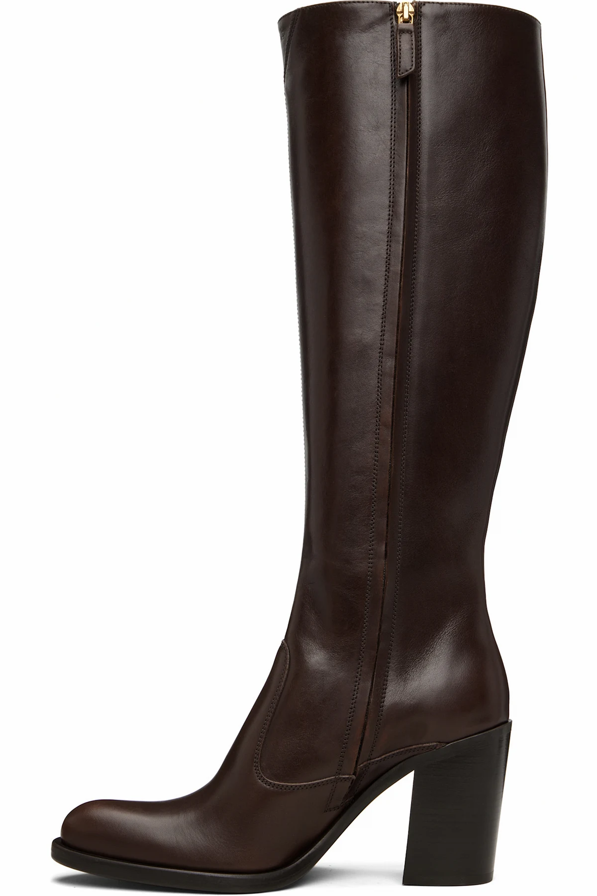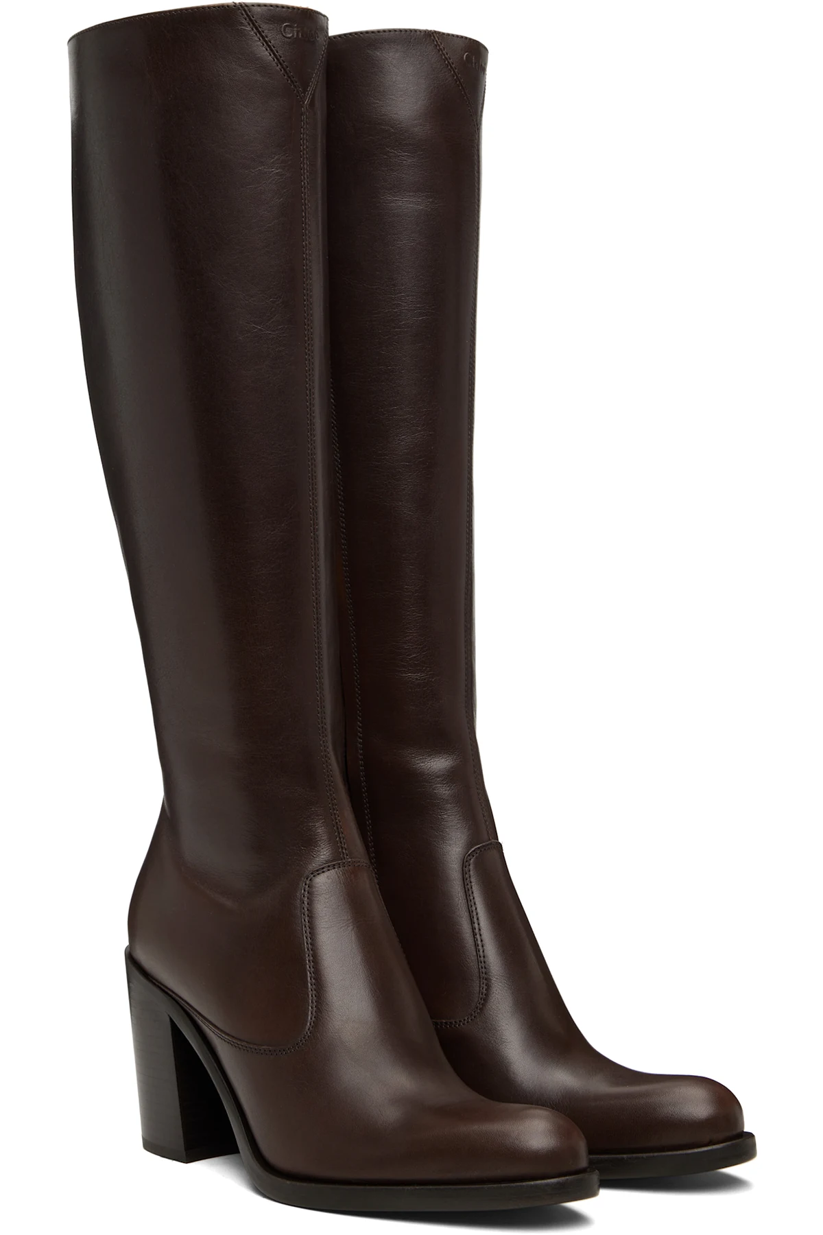 Knee-high buffed calfskin boots.