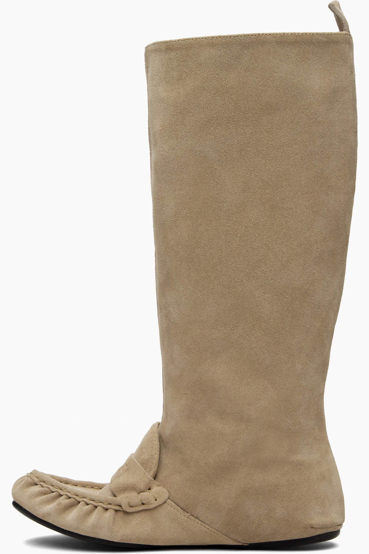 Calf-high suede boots.