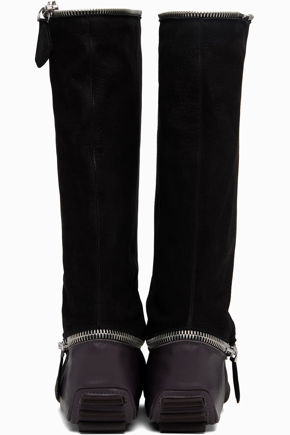 Mid-calf suede and grained leather boots.