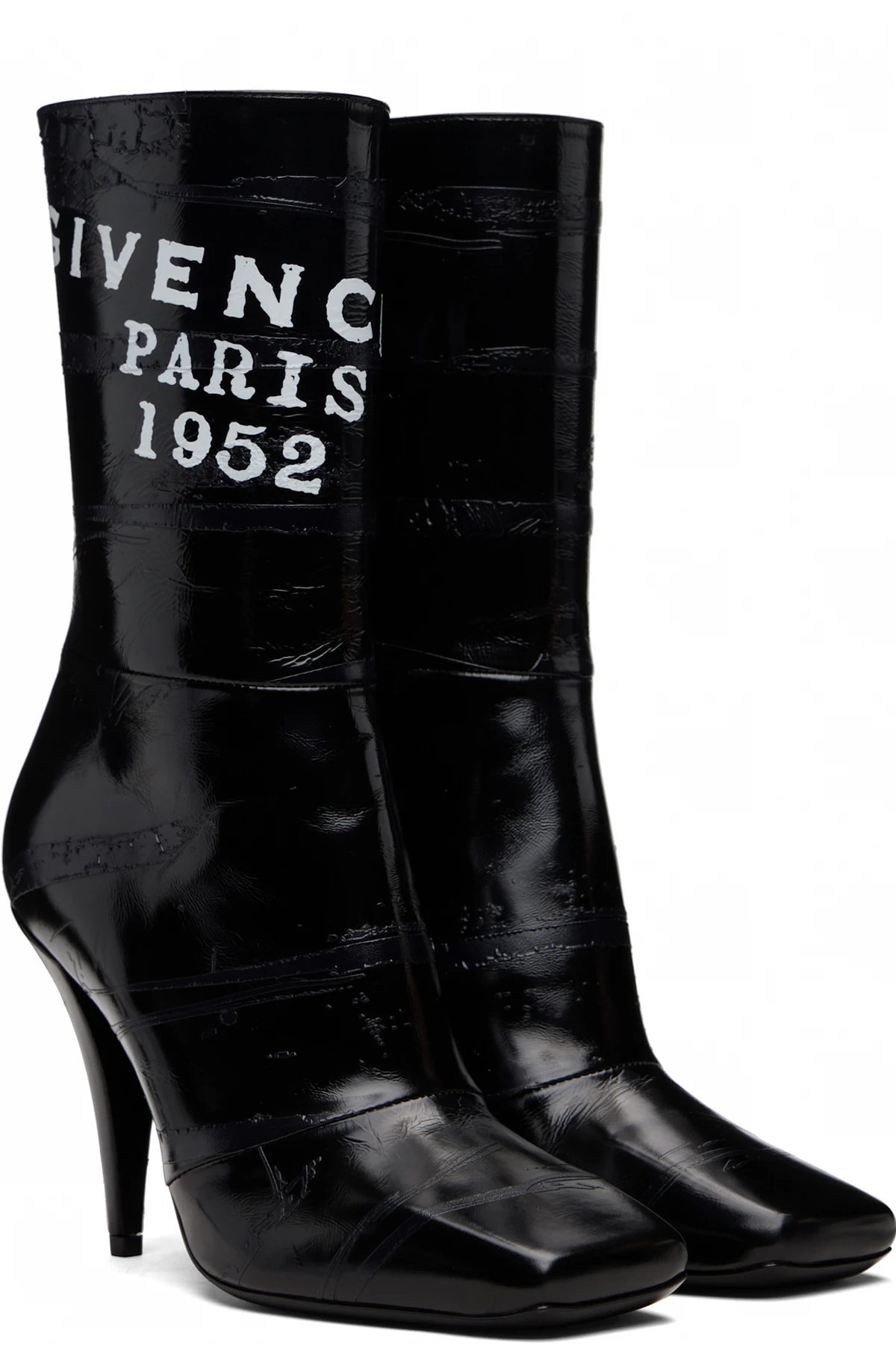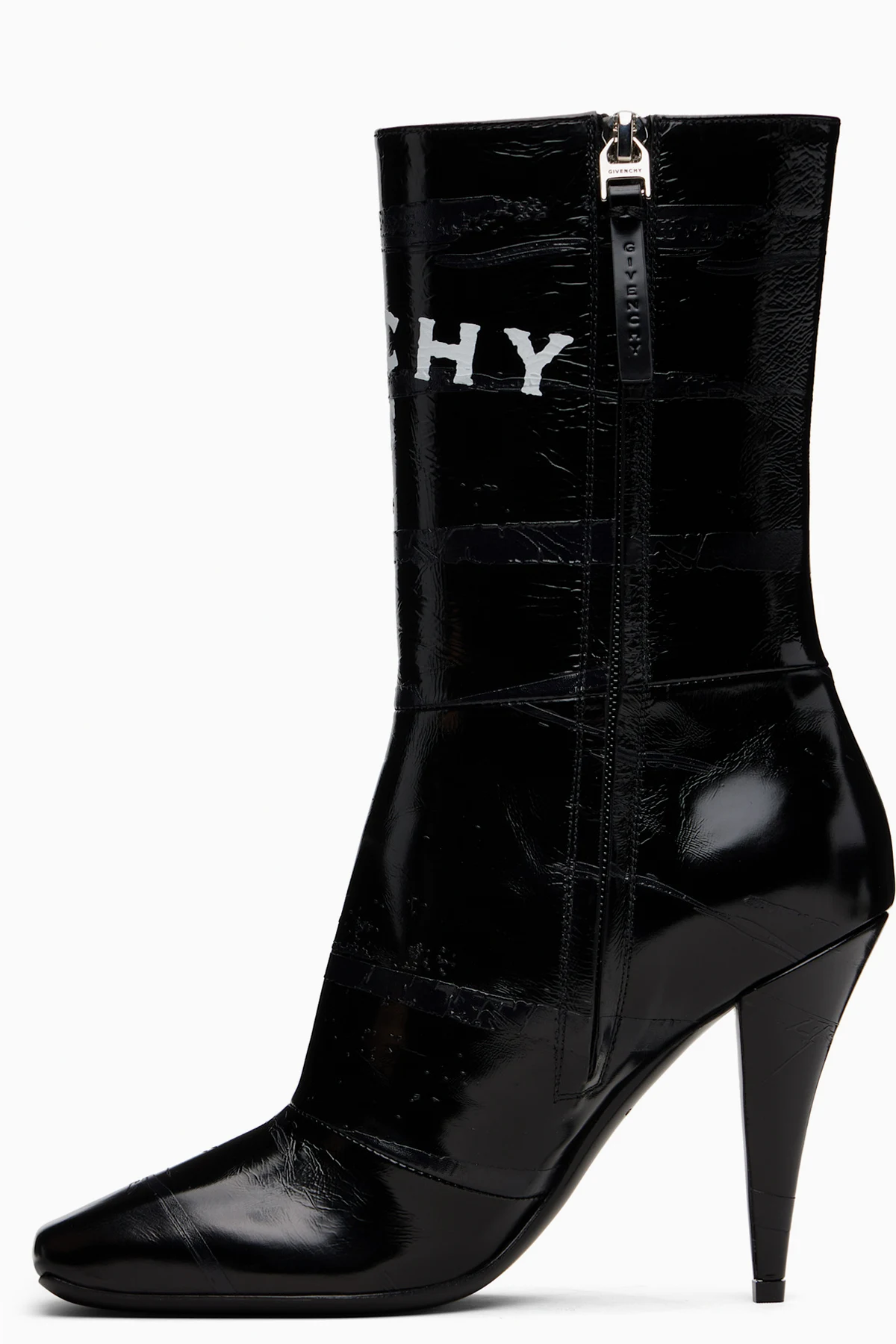 Givenchy Black Sliced Square 'GIVENCHY' Tape Boots