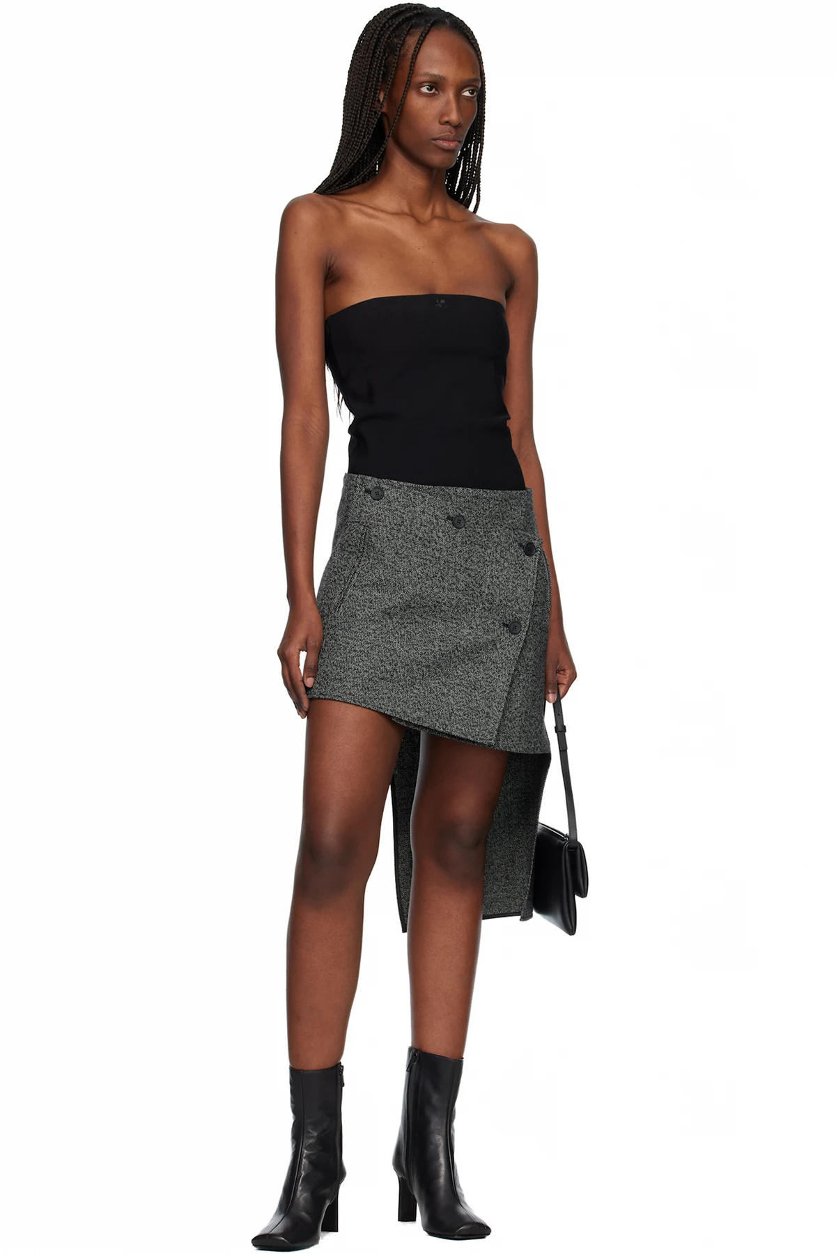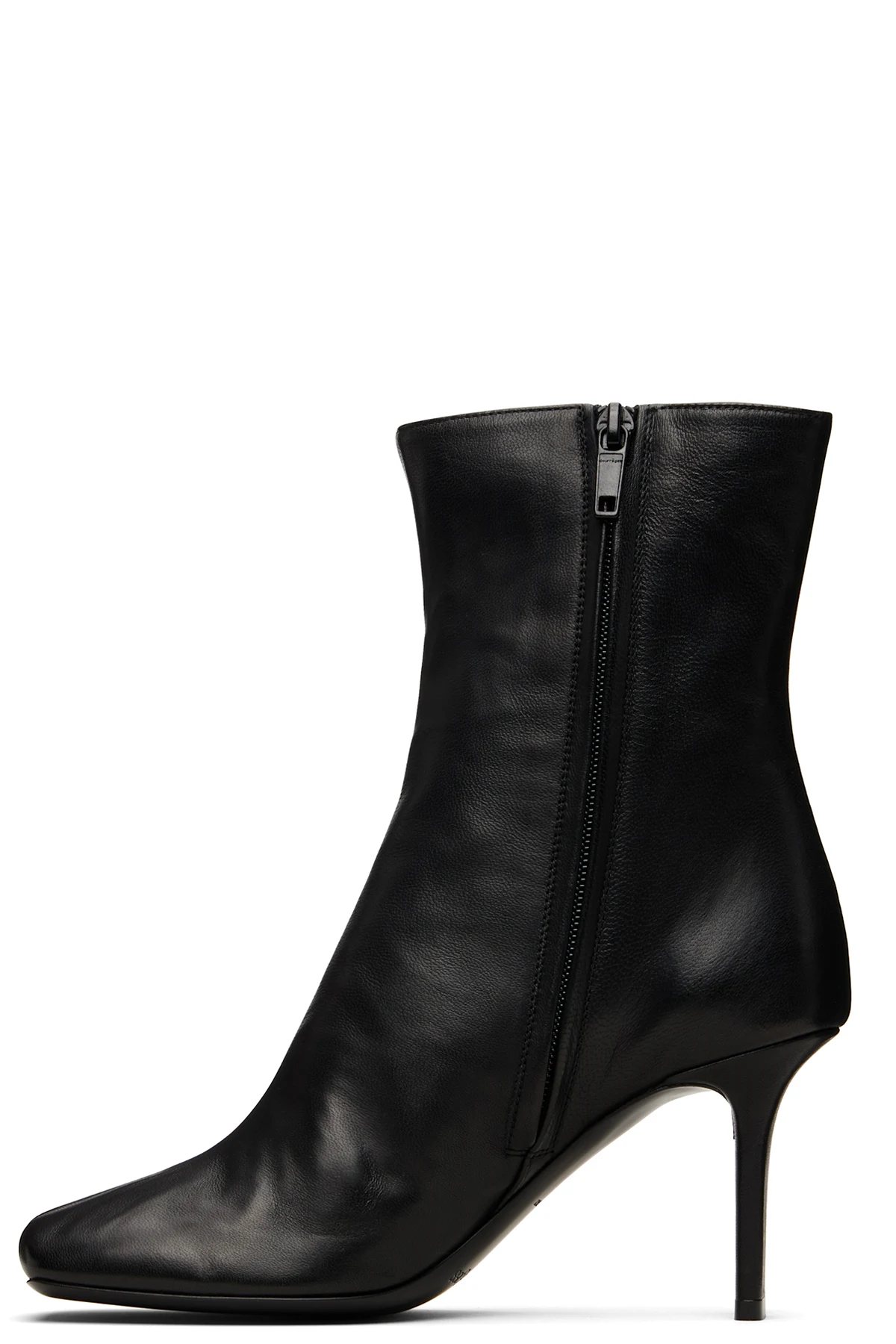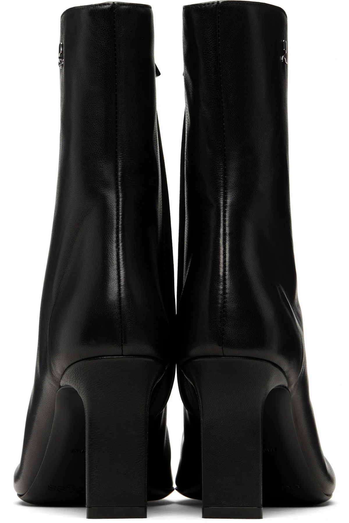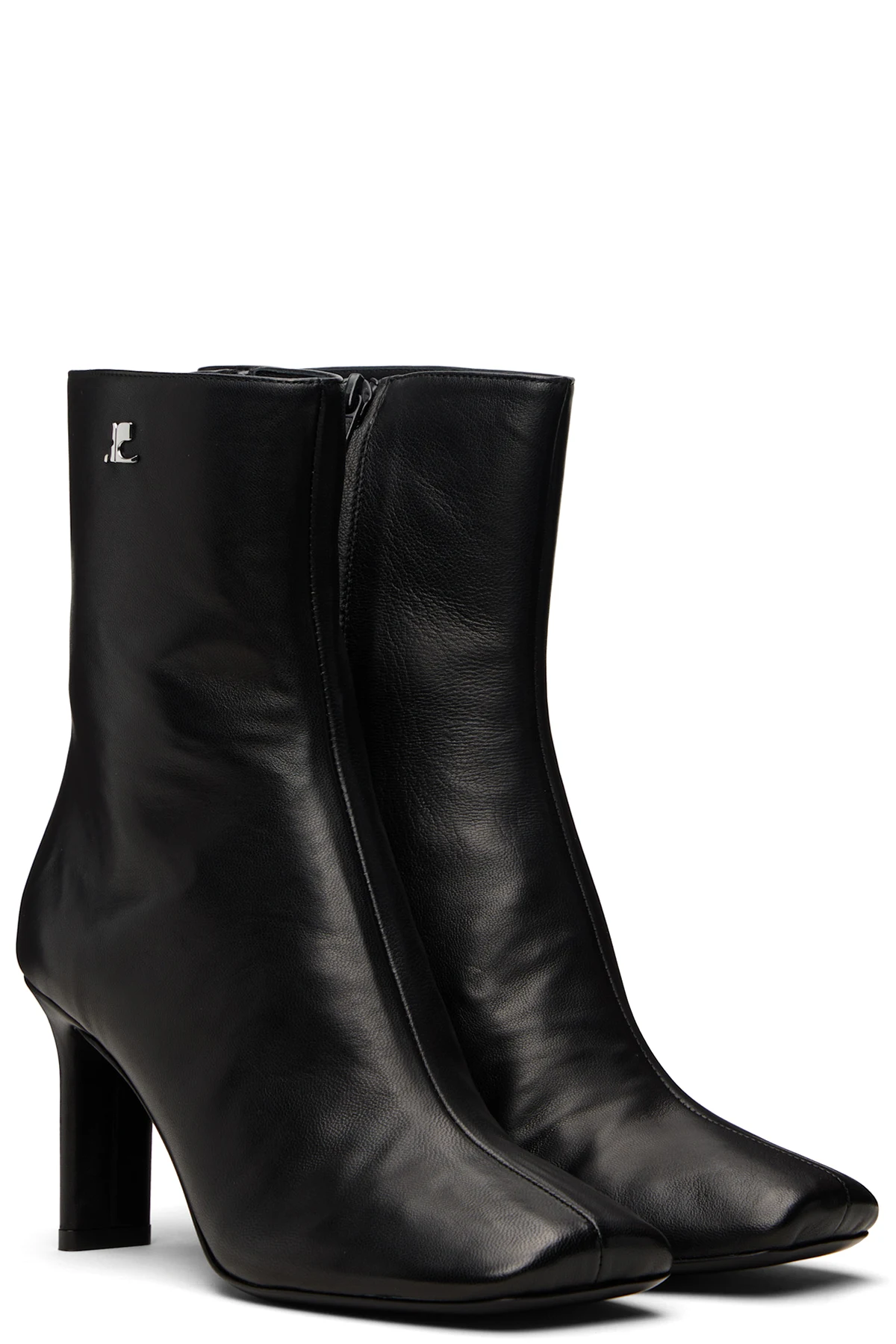Courrèges Black Square Toe Leather Ankle Boots