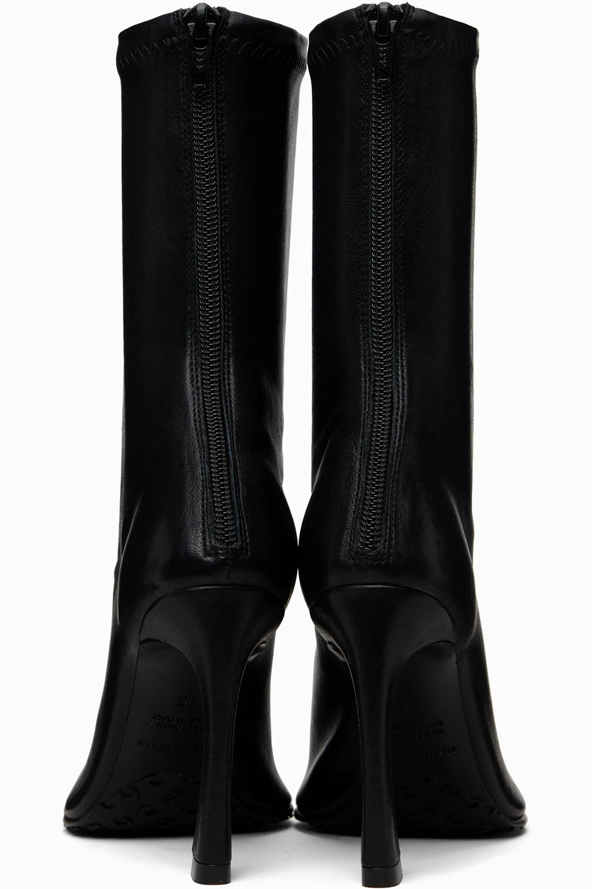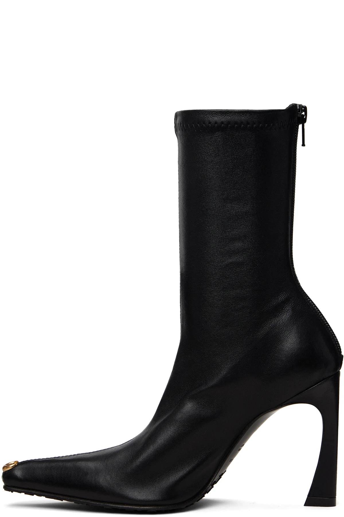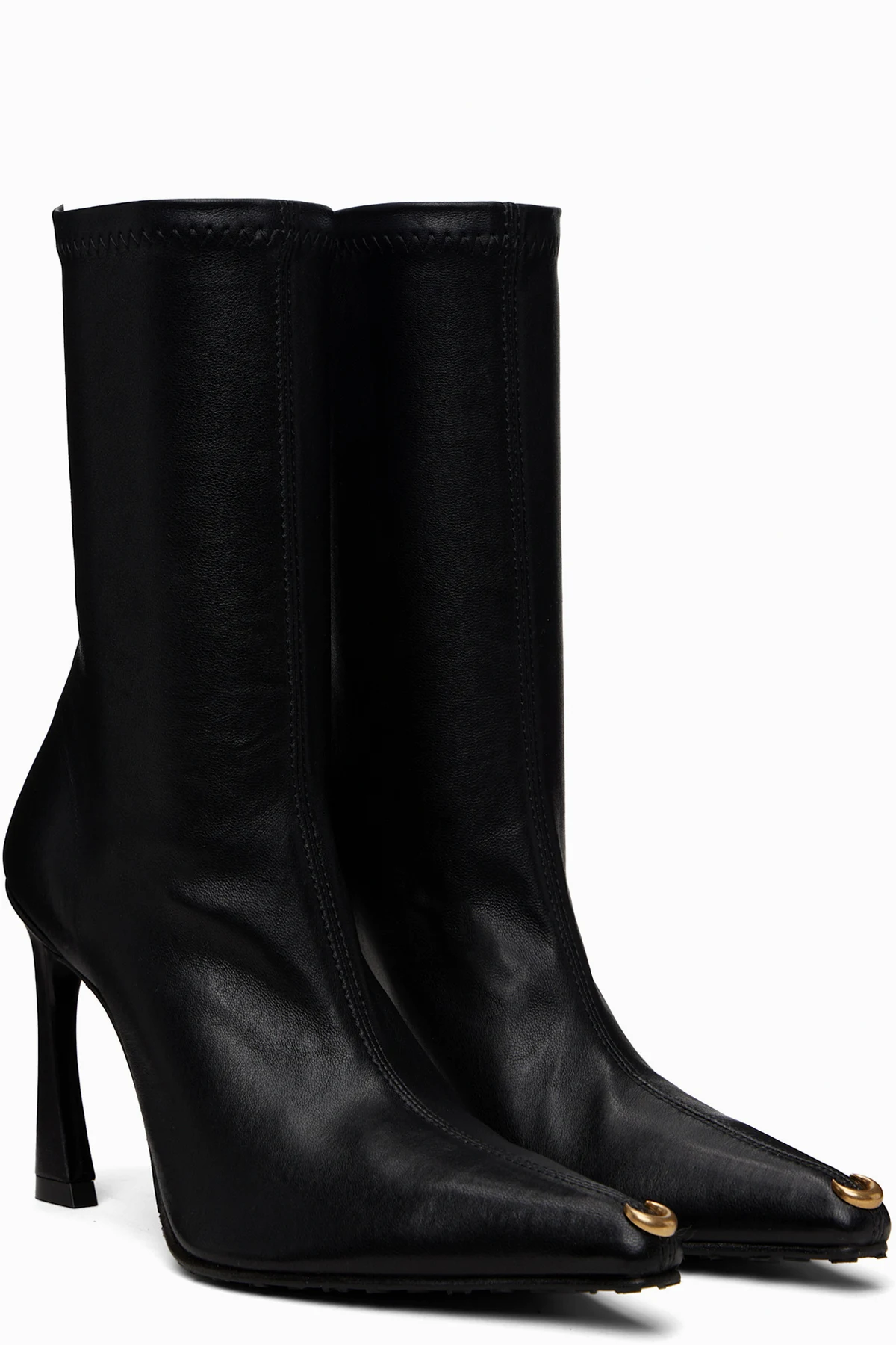 Marine Serre Black Smooth Leather MS Kiss Ankle Boots