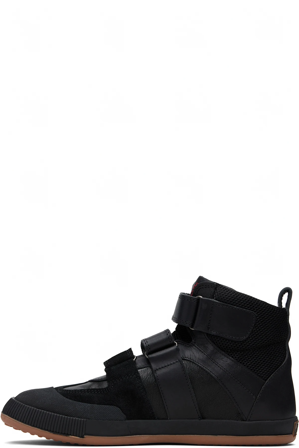 High-top buffed leather, suede, and mesh sneakers.
