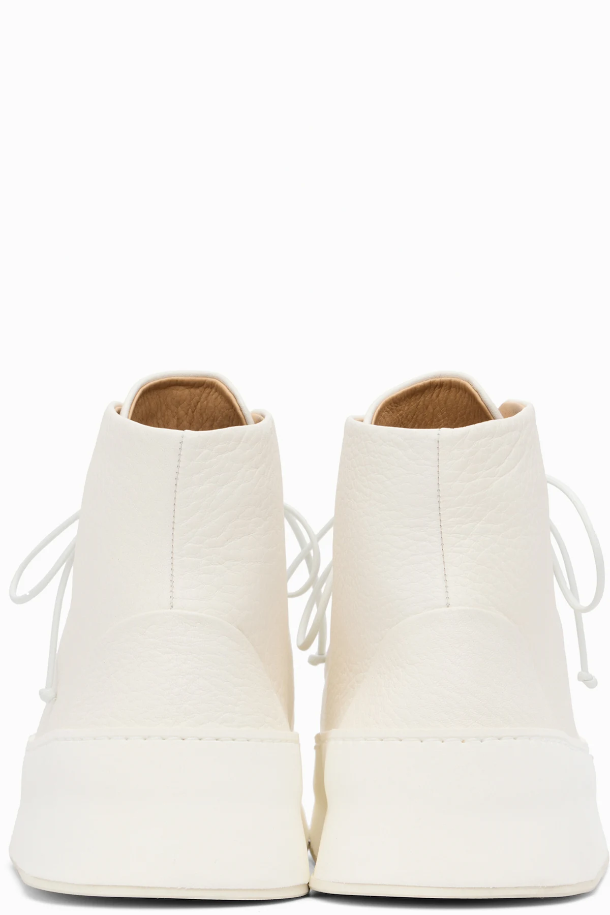 High-top grained calfskin sneakers.