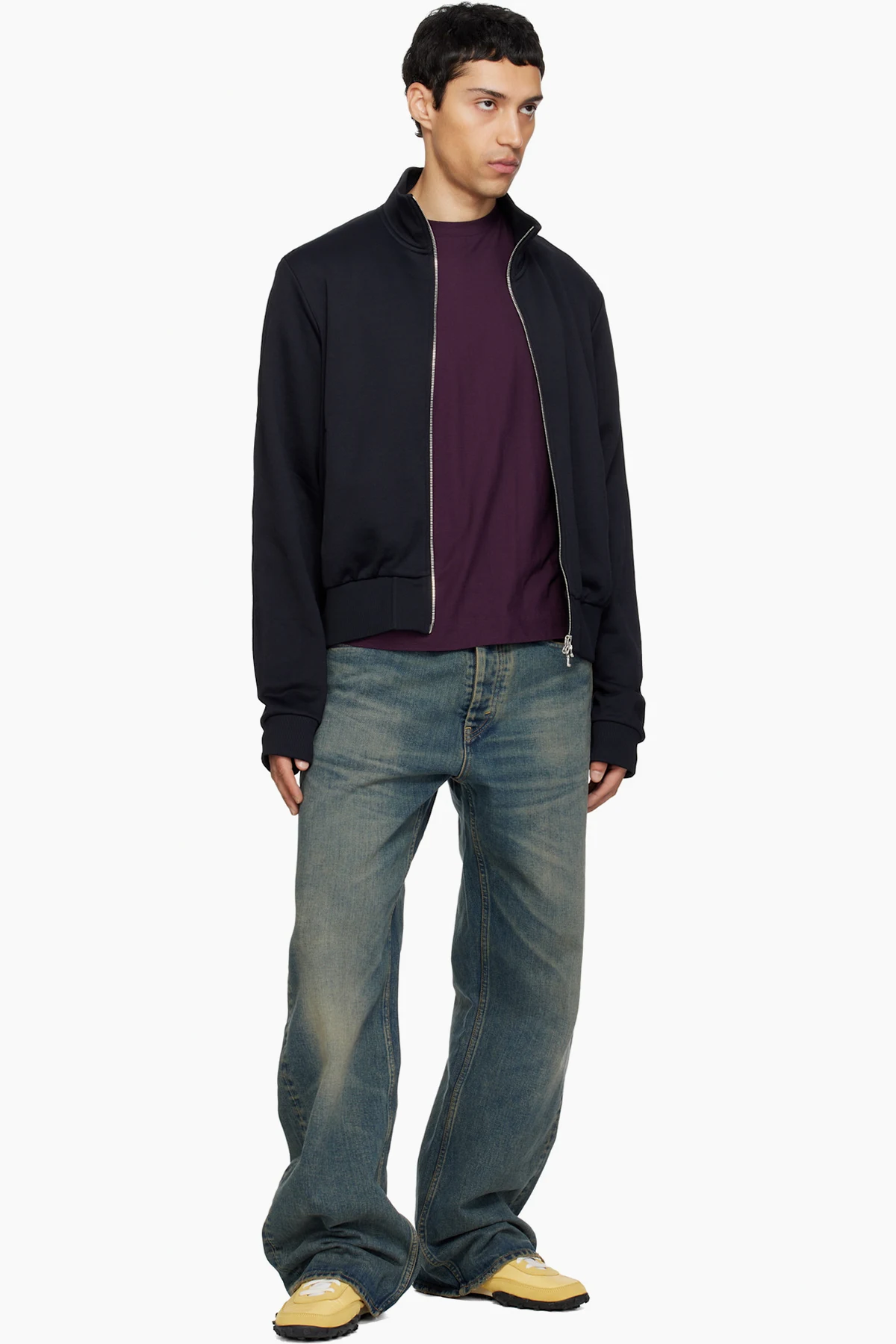 Low-top canvas and suede sneakers.