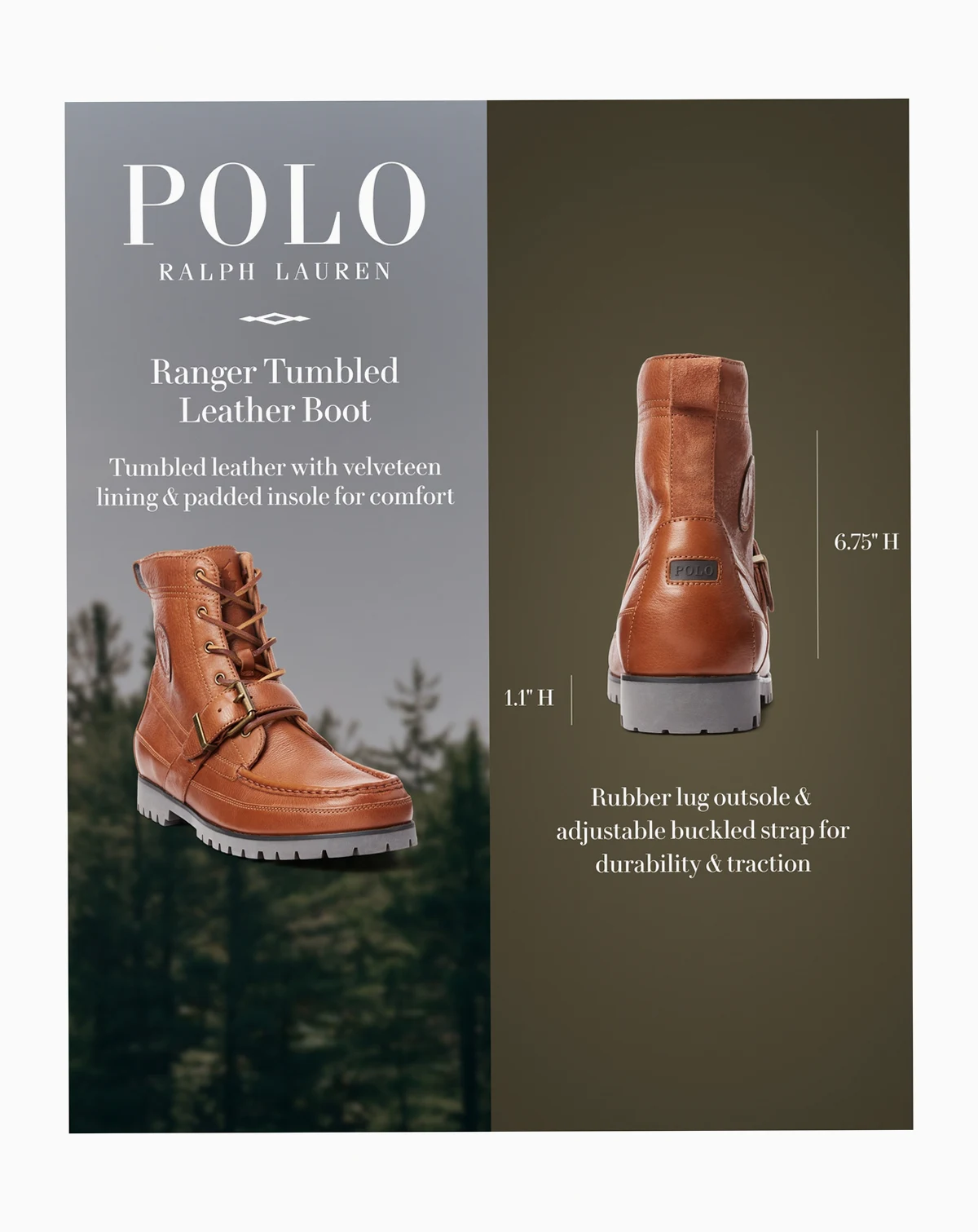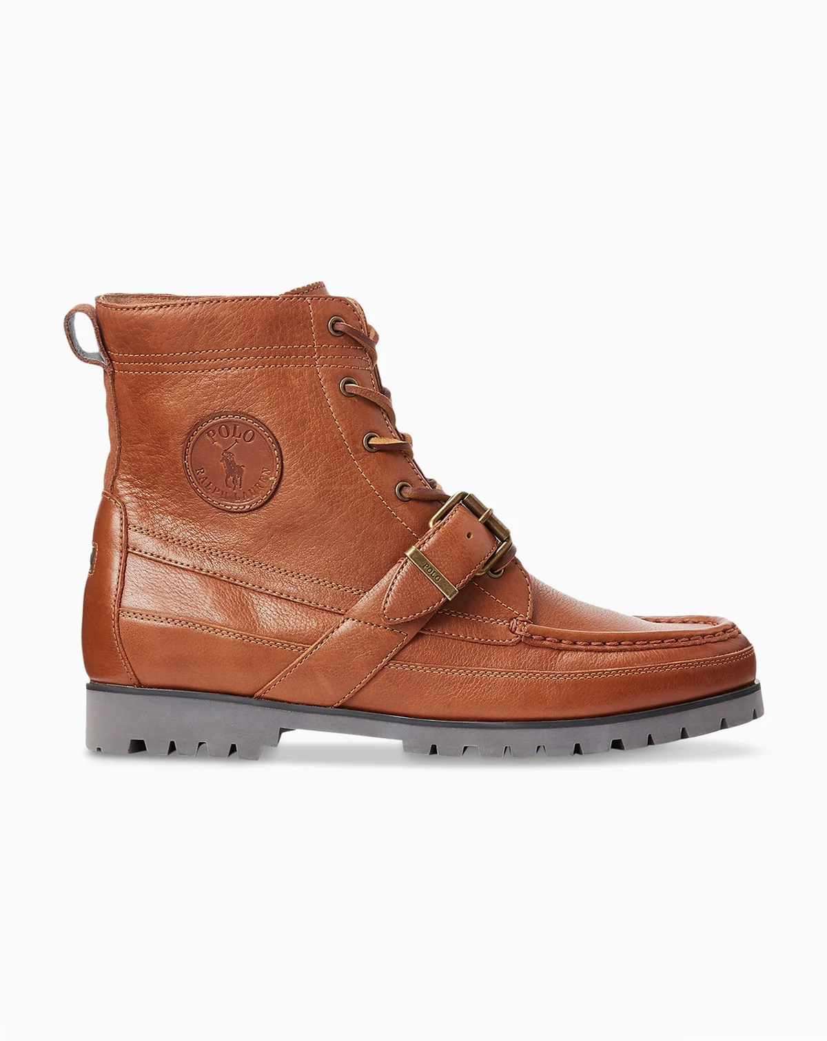 Constructed from tumbled leather that is oiled and waxed for durability, the utilitarian-inspired Ranger boot by Polo Ralph Lauren features a hand-stitched toe. Designed with a lace-up front and a buckled strap at the vamp, it is finished with a side zip for ease of wear. A rugged look matched by luxe comfort.