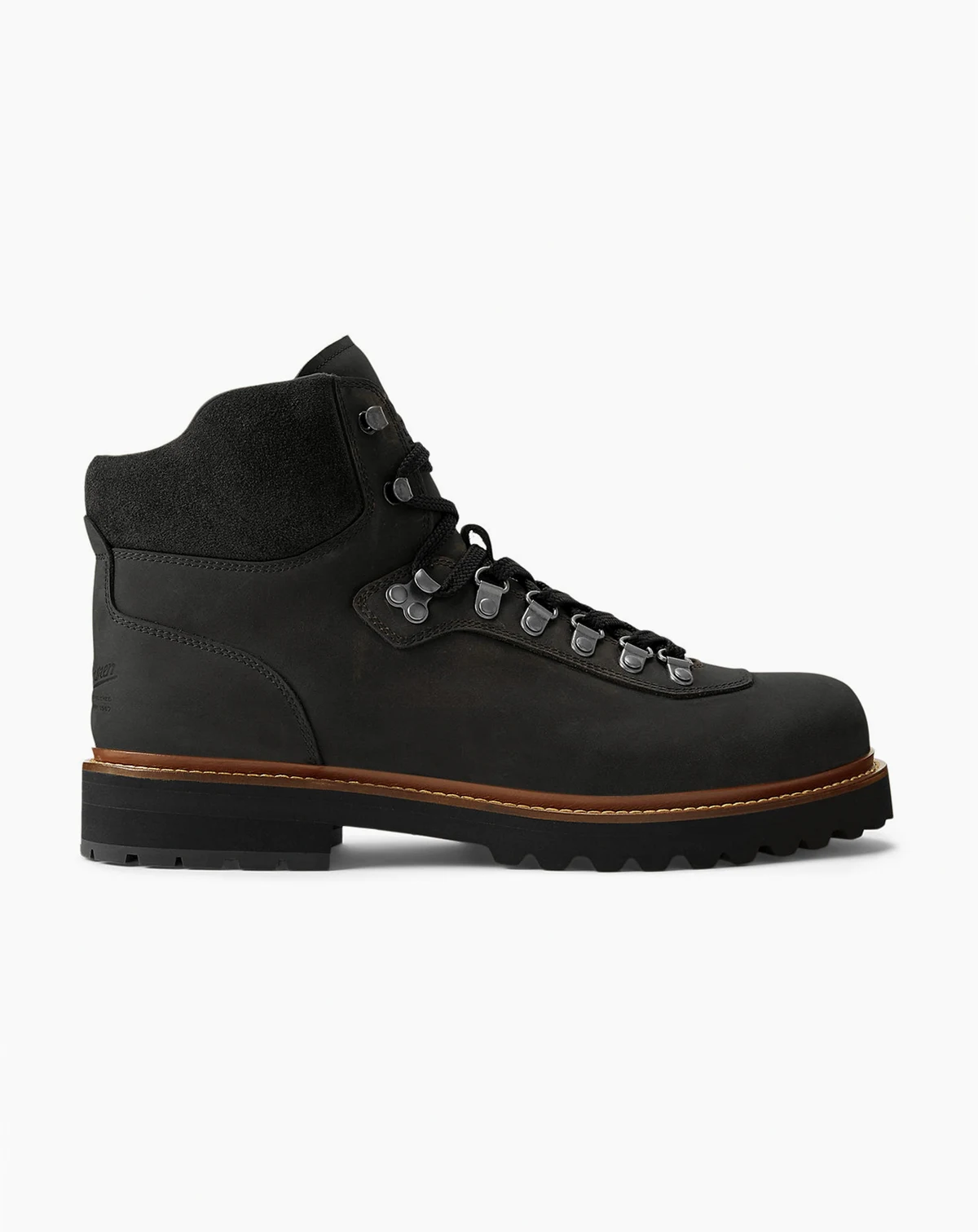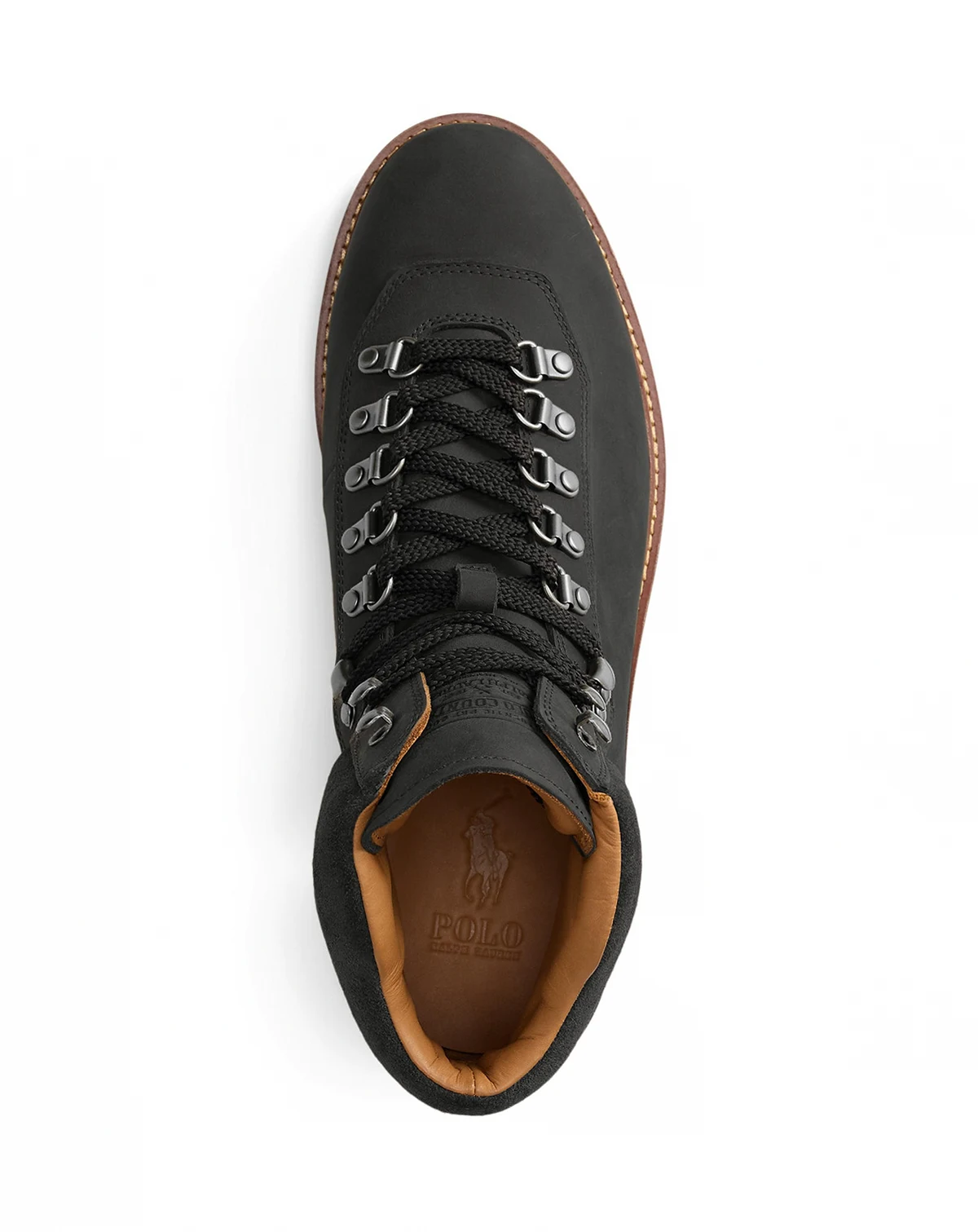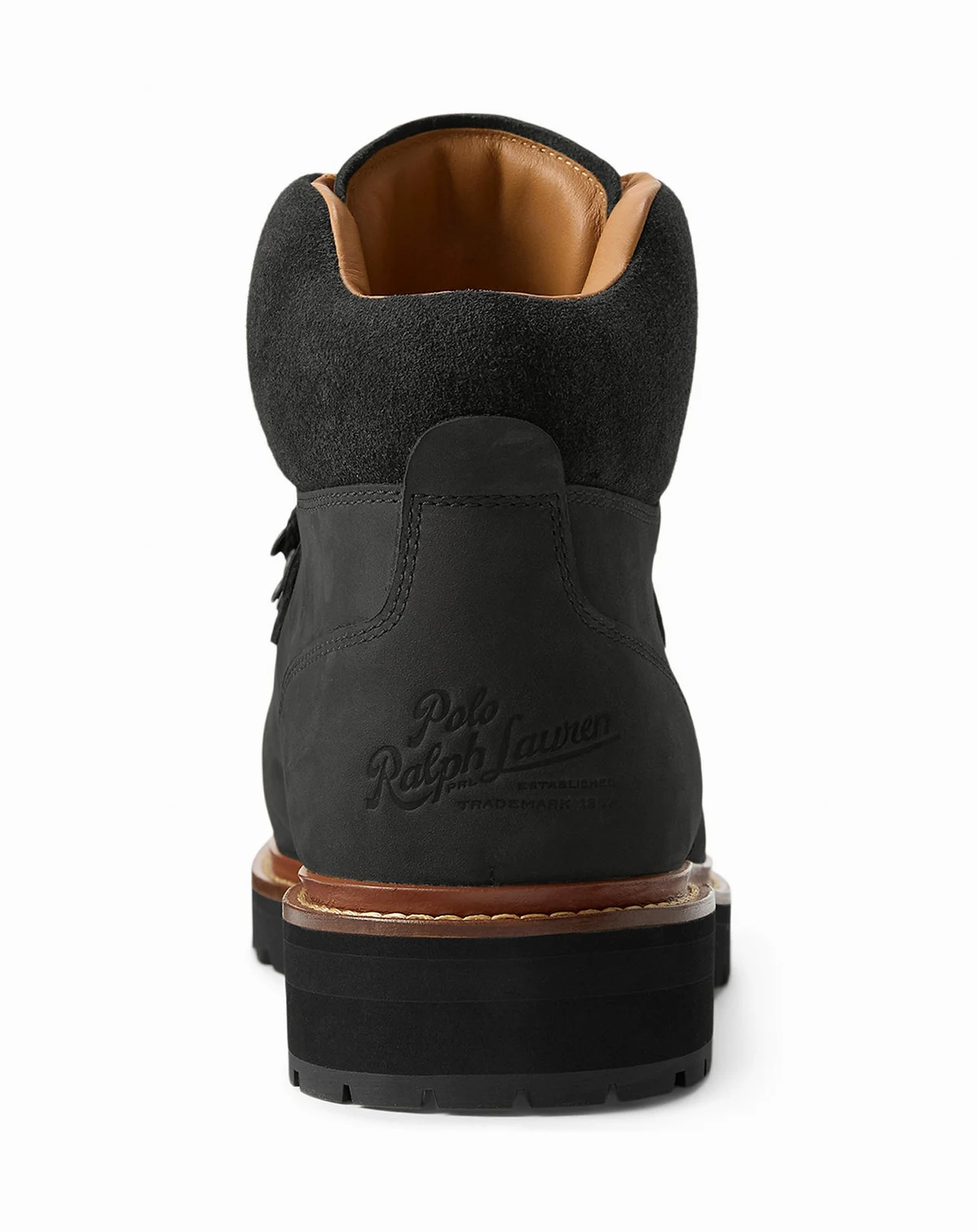 Rugged with a matte finish that is oiled and waxed, these mid-cut boots from Polo Ralph Lauren recall early 90s collections with an iconic logo at the tongue. A textured collar, brass hardware, and rubber lug sole complete the durable design.