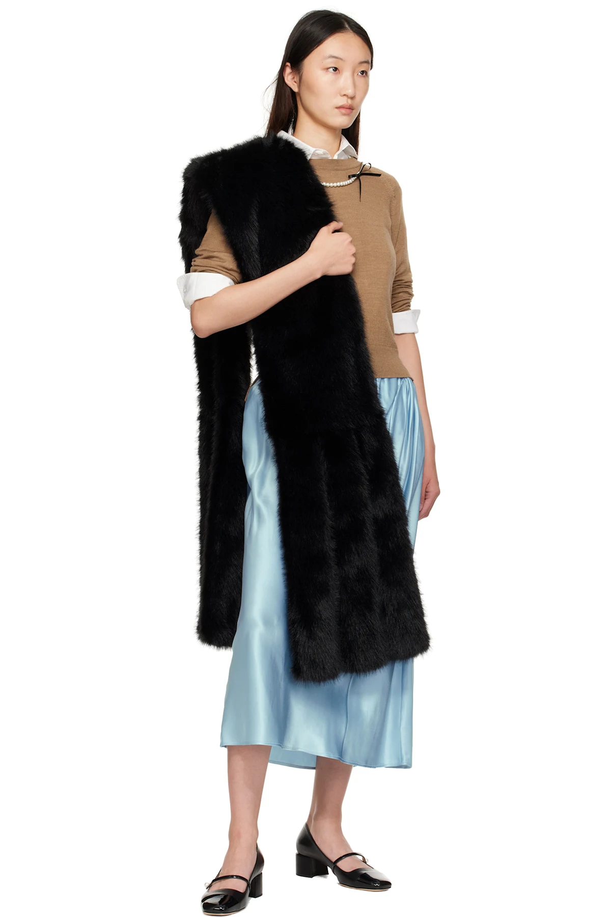 Simone Rocha Black Triple Slit Faux Fur Scarf