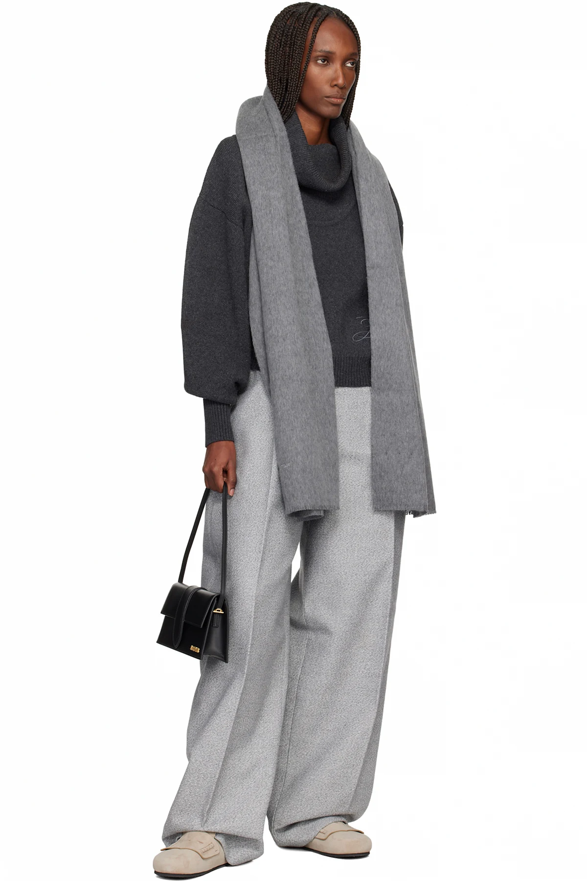 Rectangular brushed knit wool- and cashmere-blend scarf.