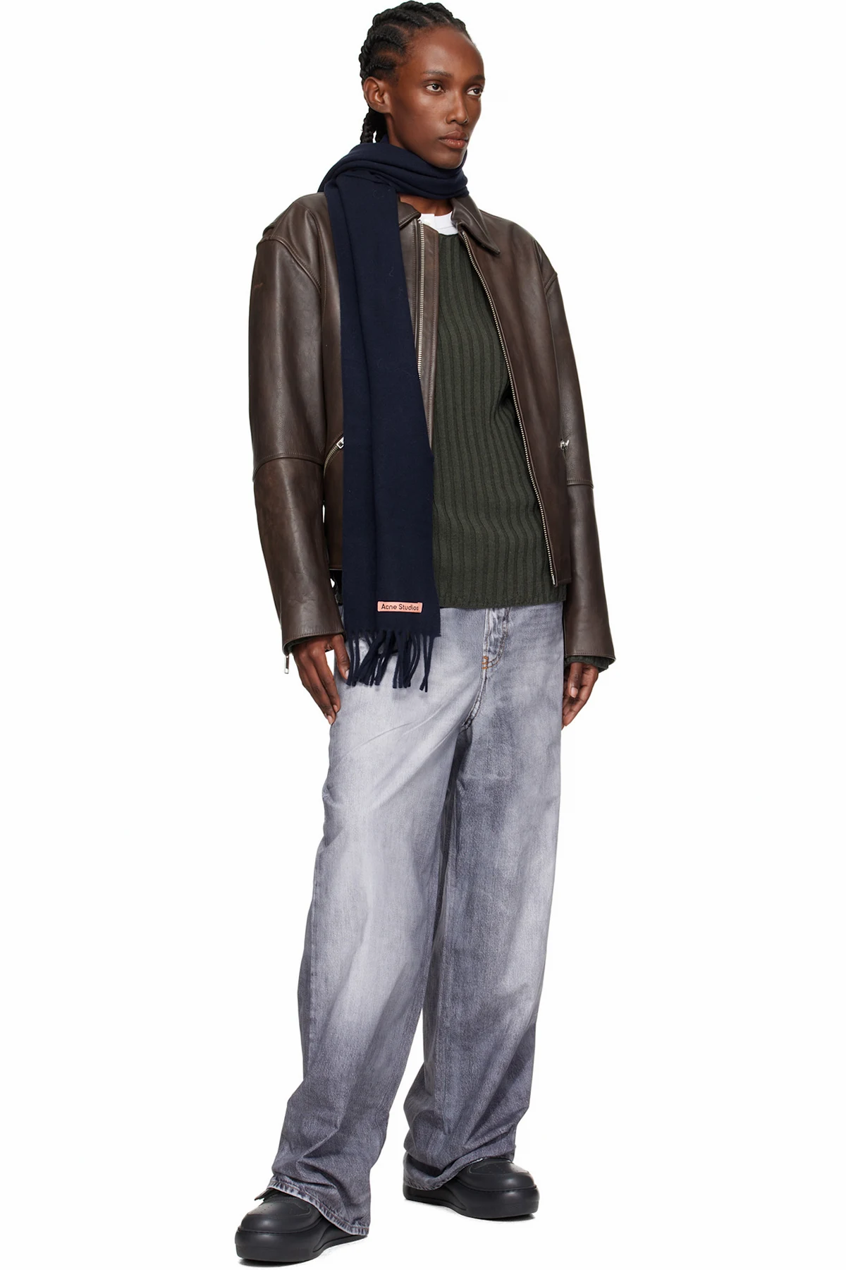 Acne Studios Navy Skinny Fringe Wool Scarf