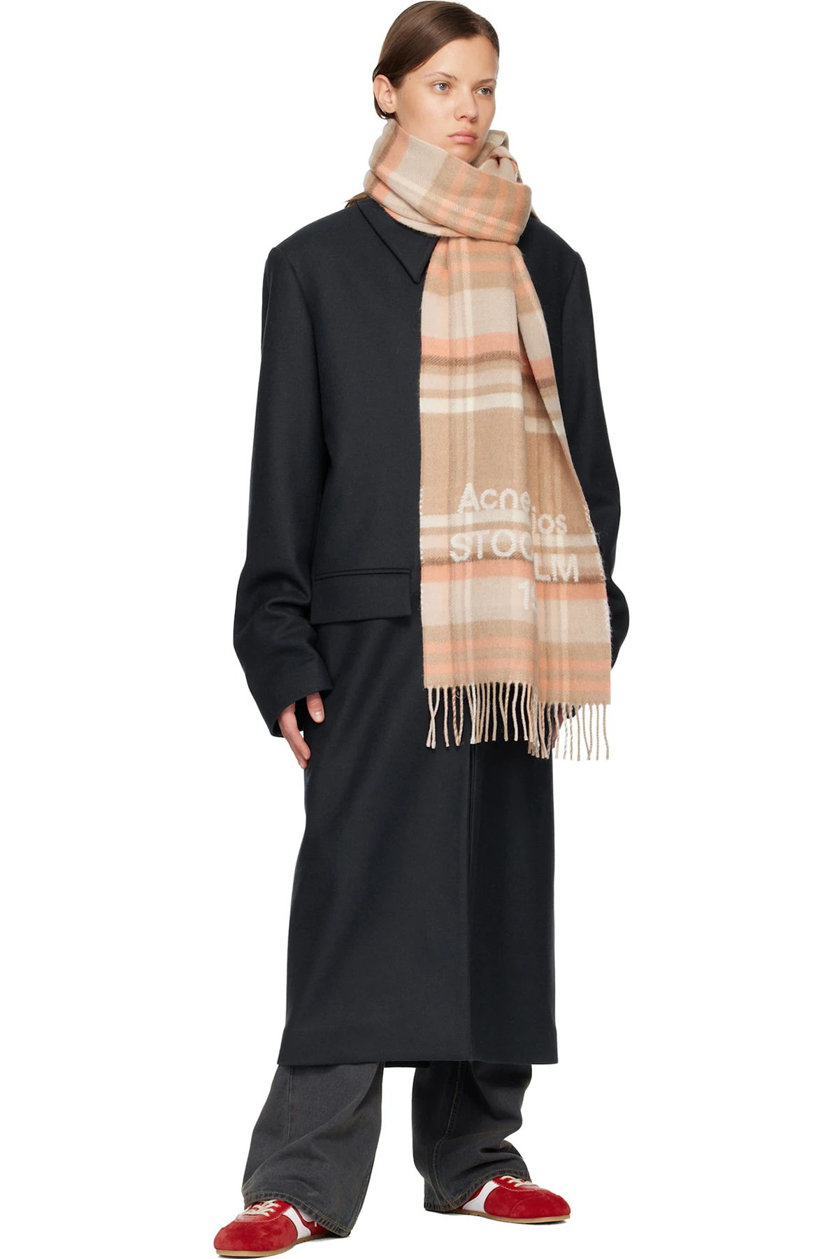 Acne Studios Beige & Pink Wide Check Logo Scarf