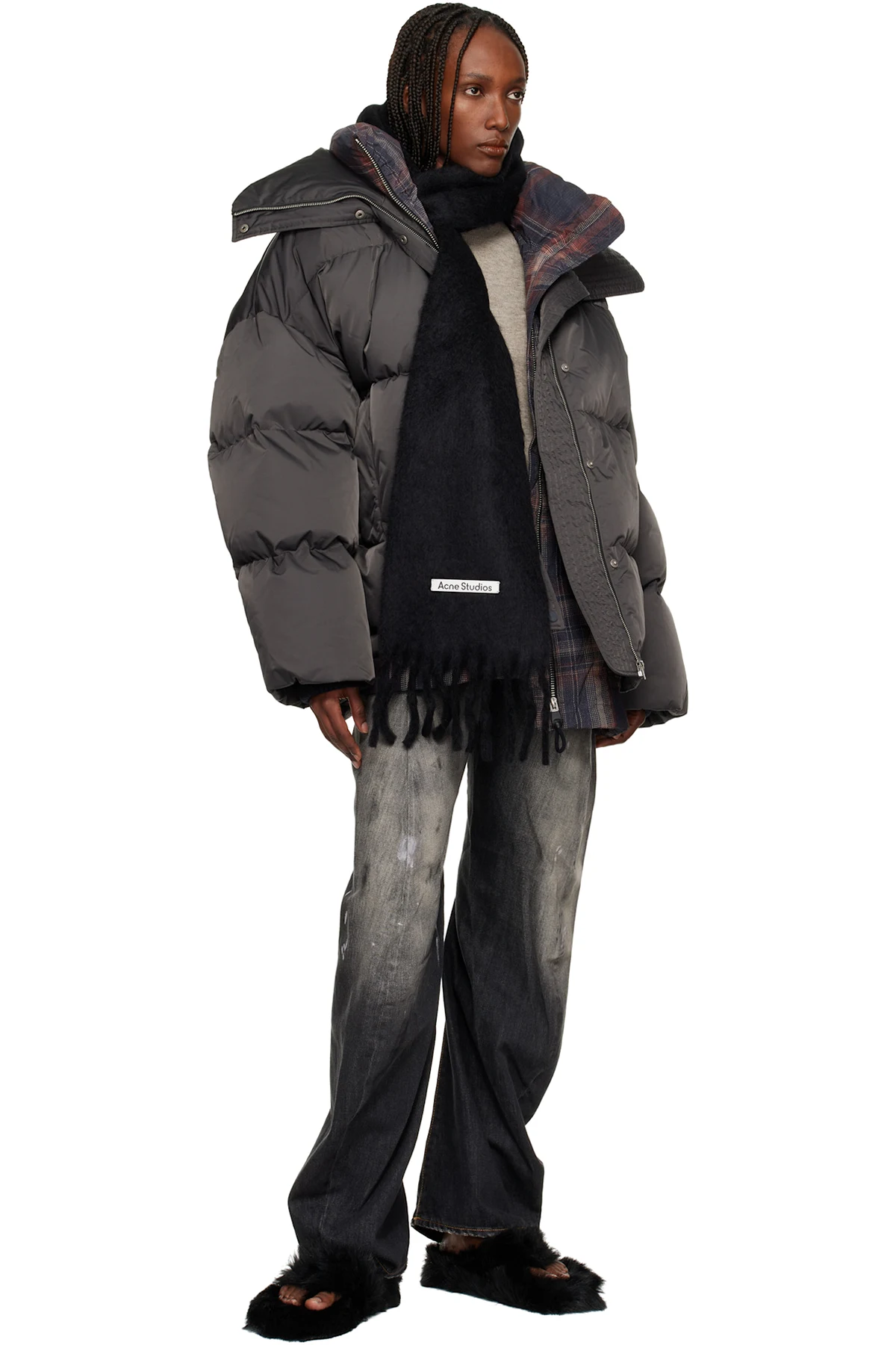 Acne Studios Black Mohair Logo Scarf