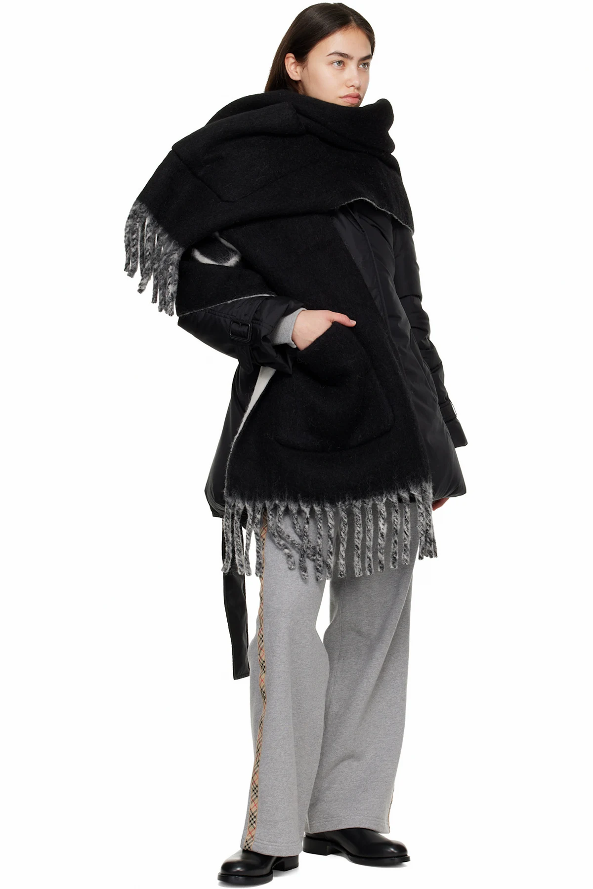 Burberry Black Logo Alpaca Wool Blend Hooded Scarf