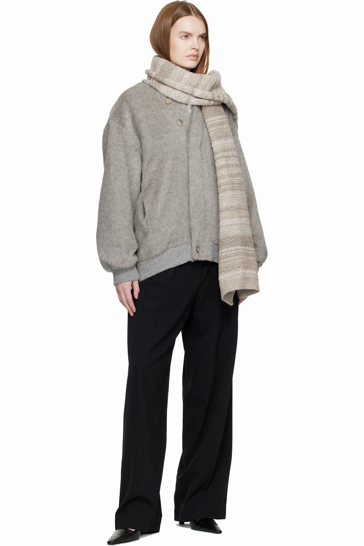 Knit baby alpaca- and merino wool-blend scarf.