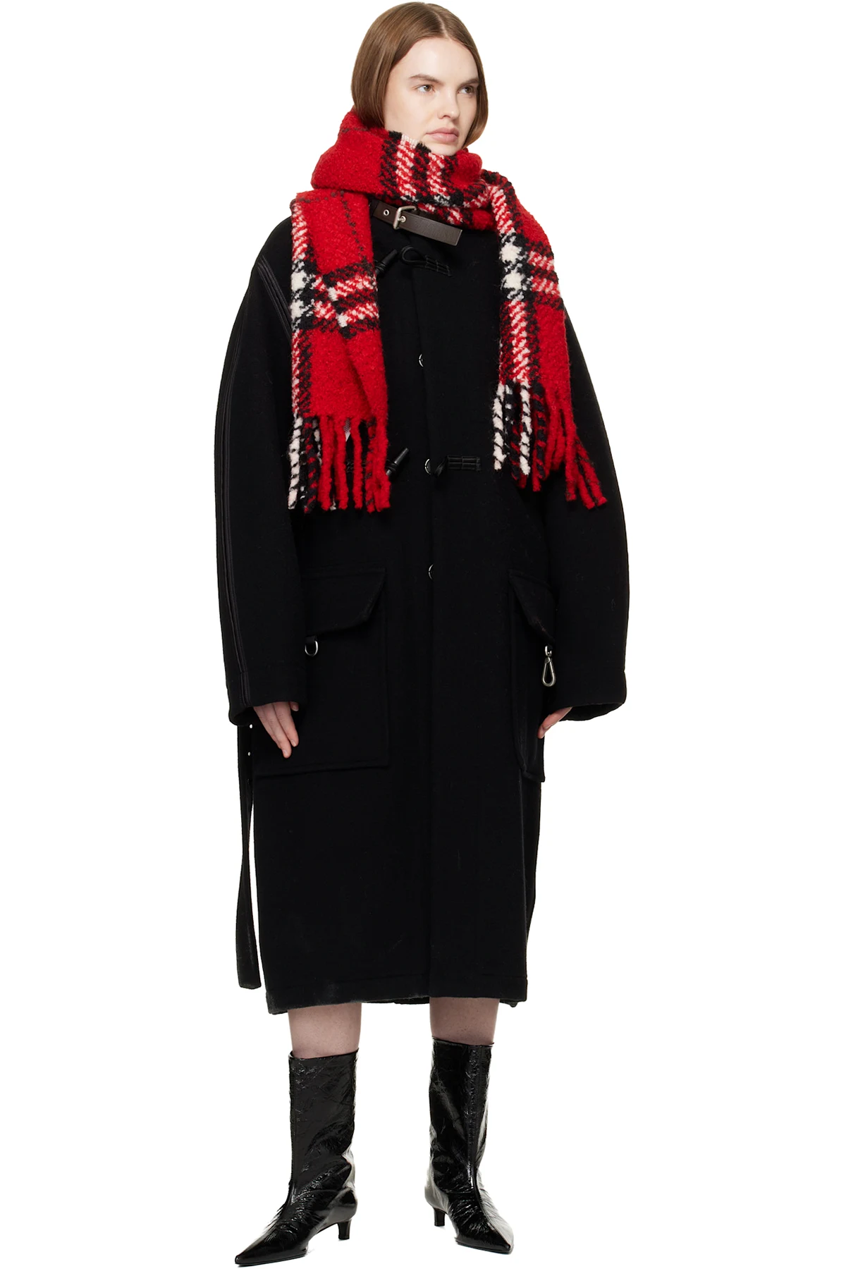 Burberry Red Check Alpaca Wool Blend Bouclé Scarf