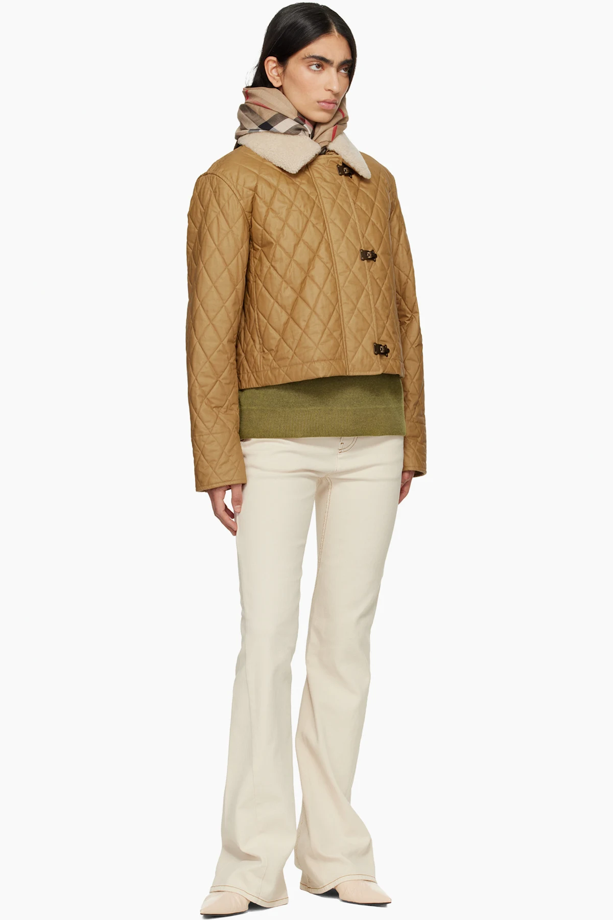 Burberry Beige Wide Check Wool Silk Scarf