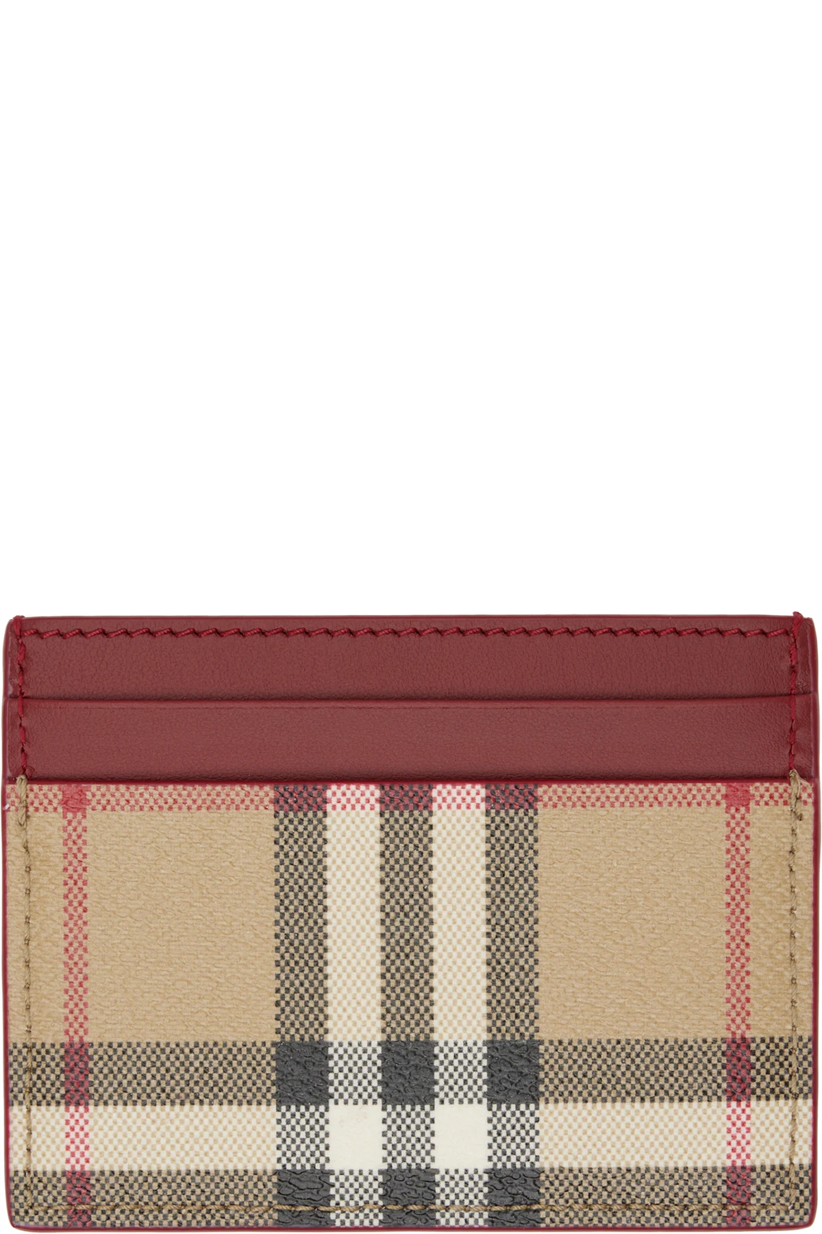 Burberry Beige & Burgundy Check Card Holder