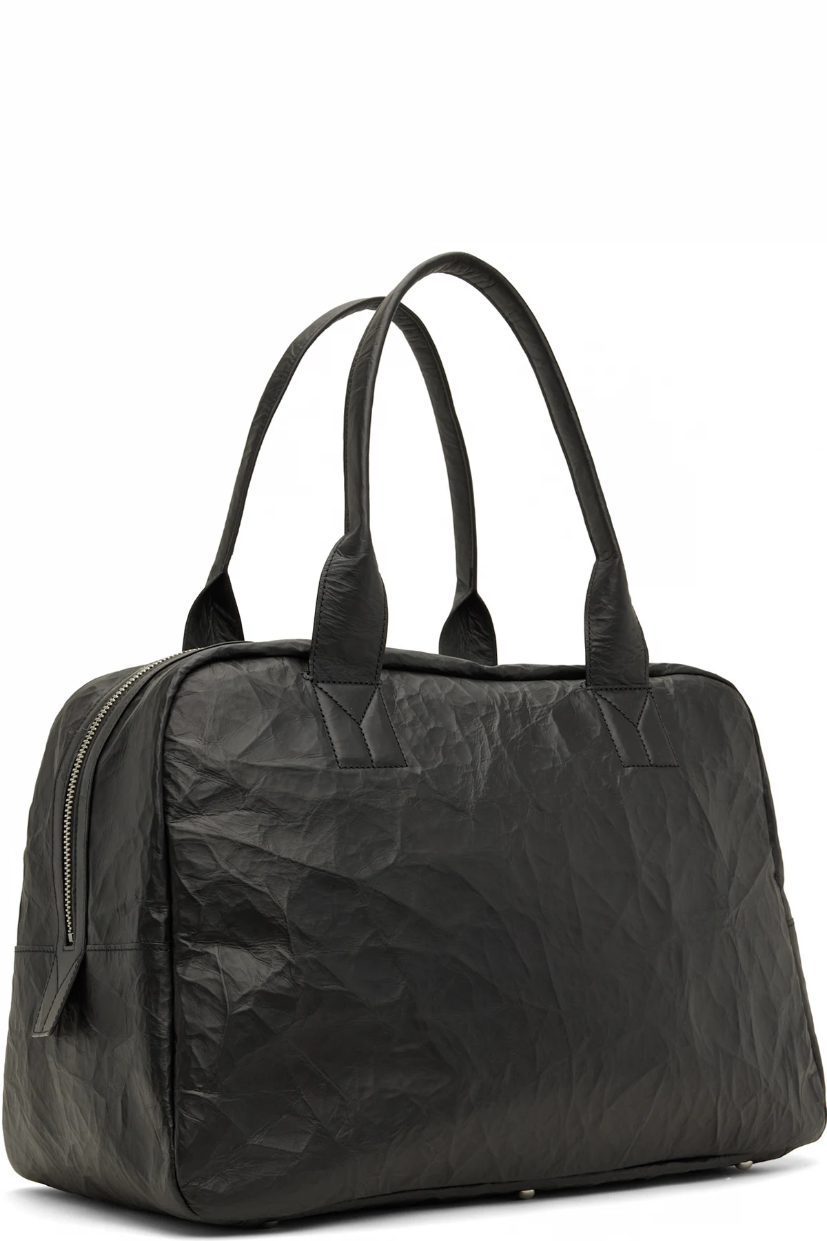 Crinkled leather duffle bag.