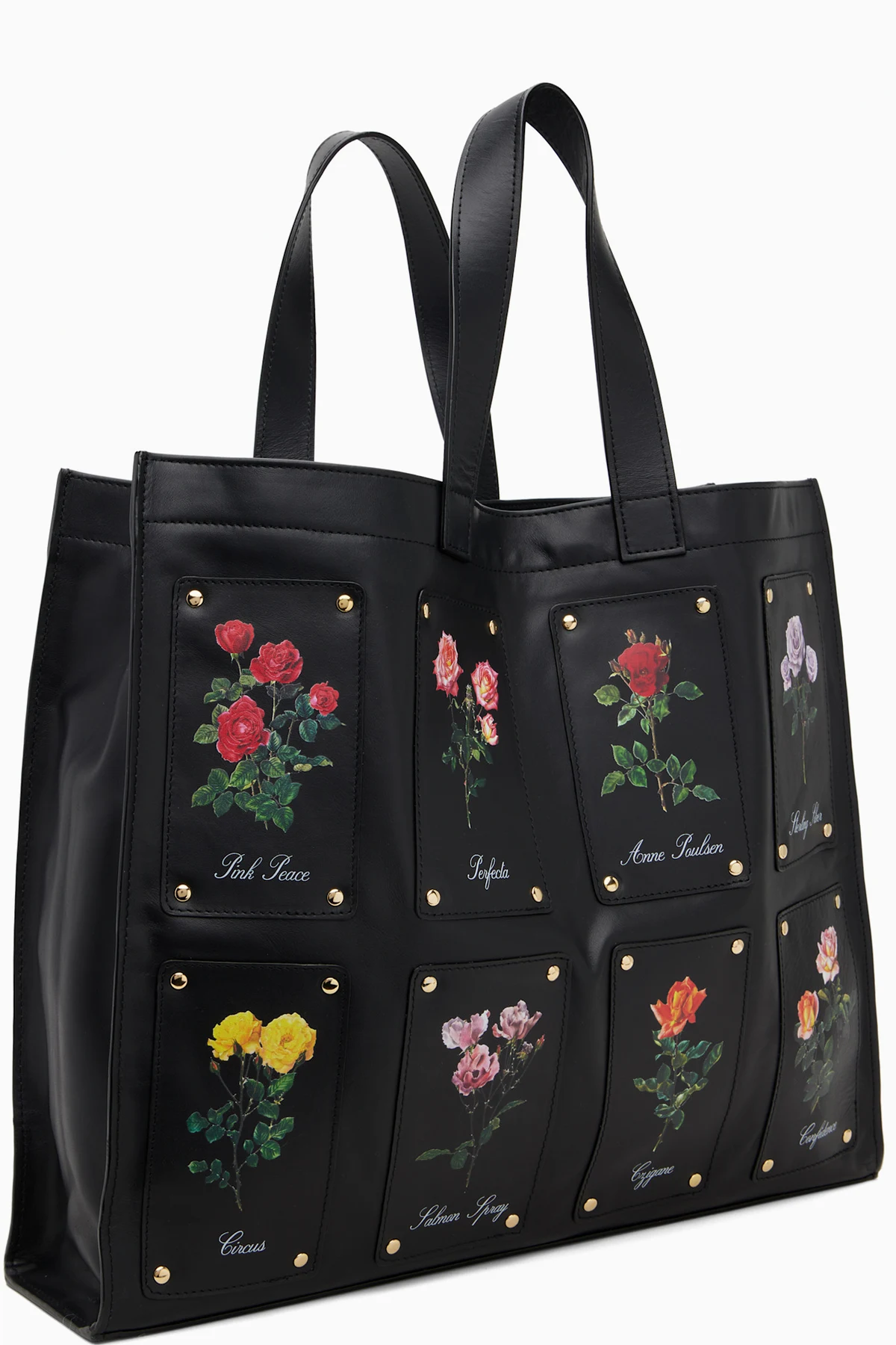 · Floral-printed appliqués with studs throughout