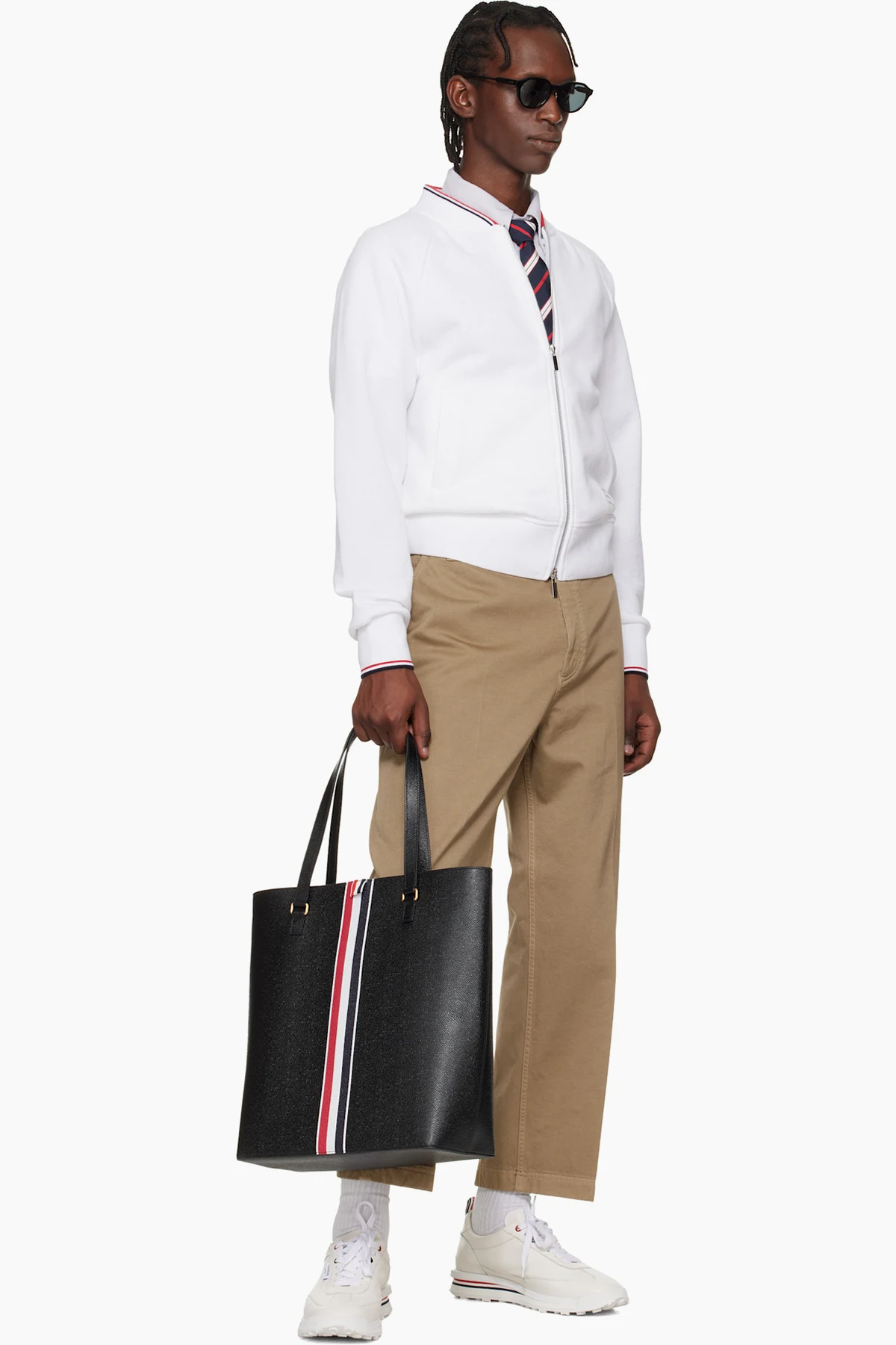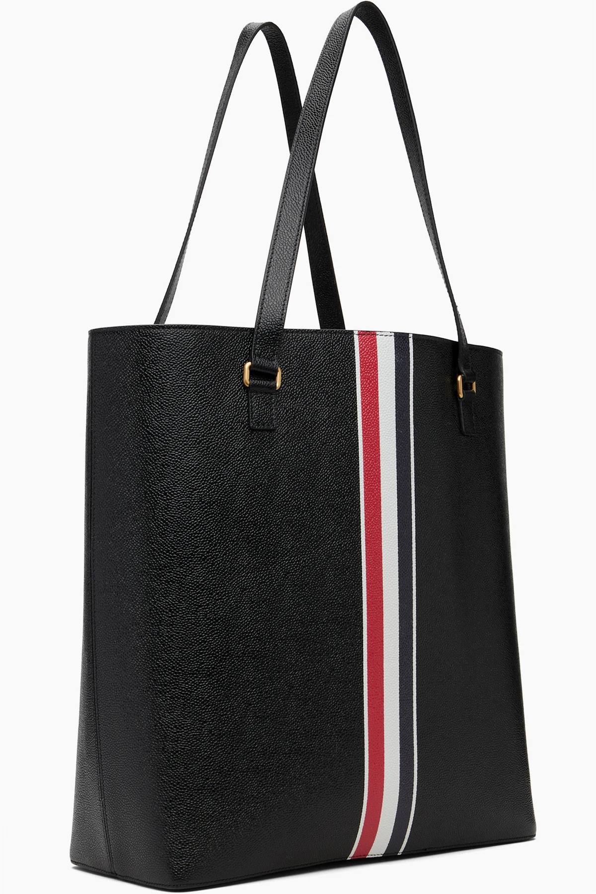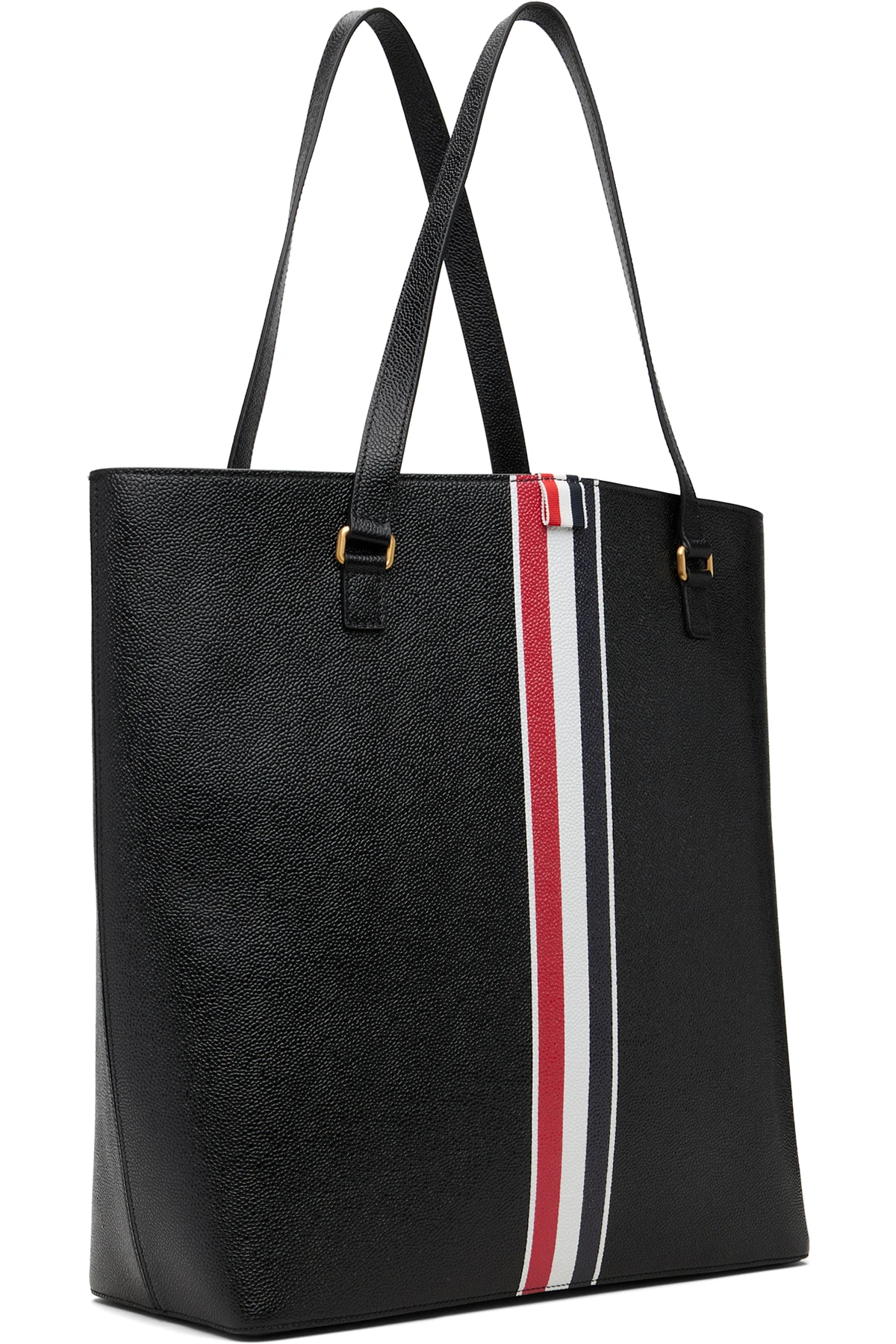 Thom Browne Black Vertical Pebble Grain Leather Tote