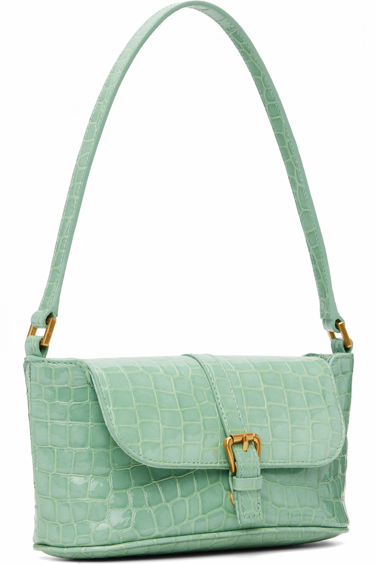 BY FAR Green Croco Miranda Baguette Bag
