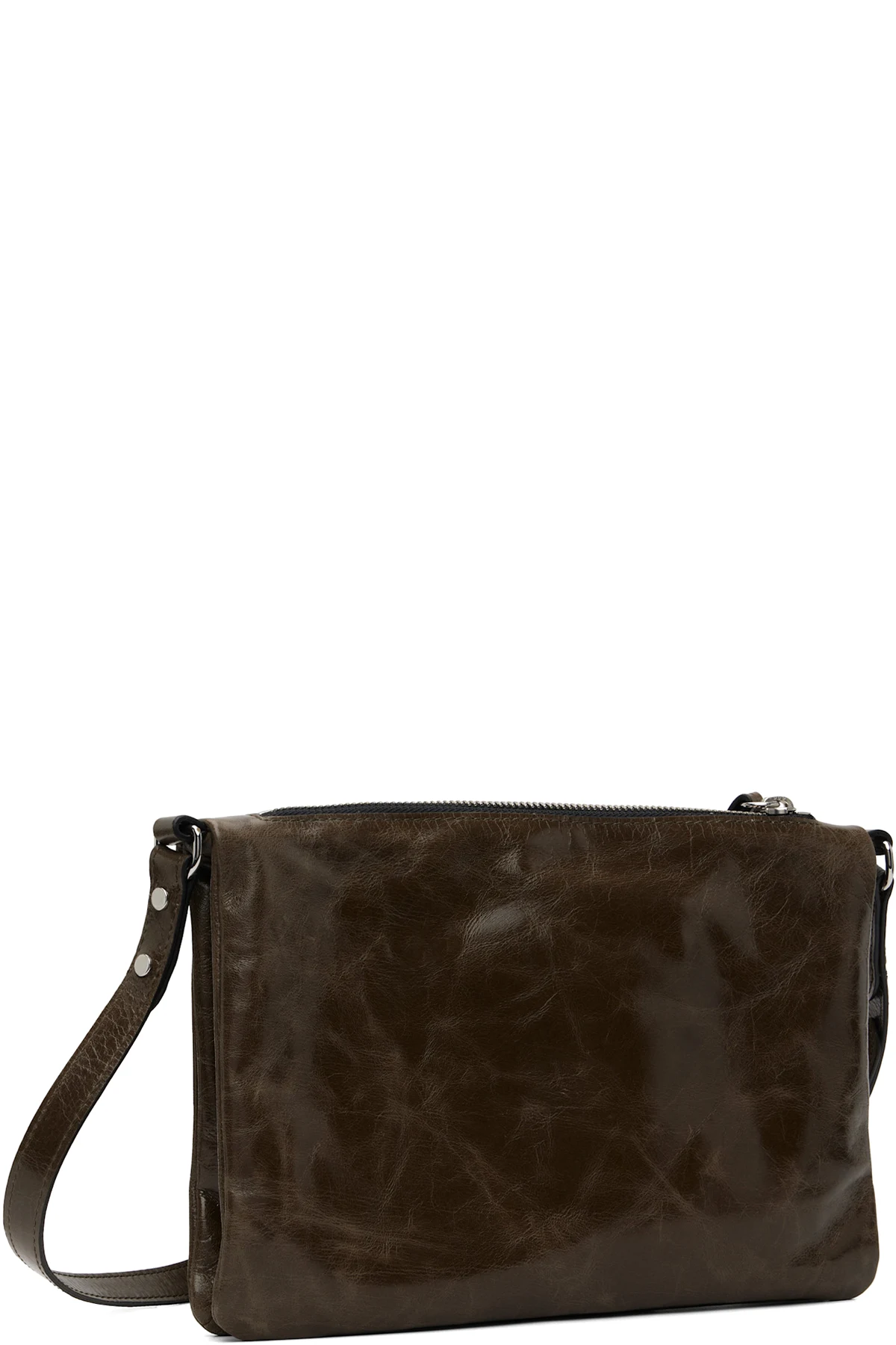 Crinkled grained leather shoulder bag.
