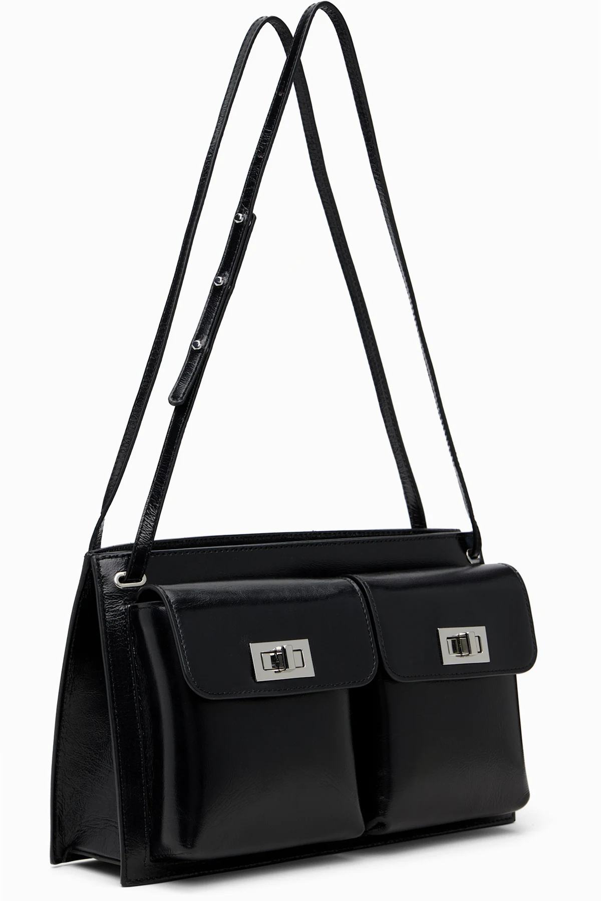 Crinkled lambskin shoulder bag.