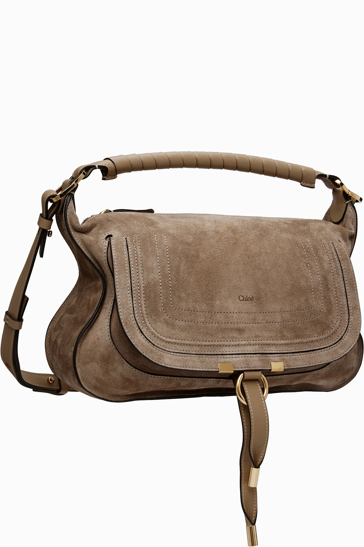 Chloé Taupe Suede Leather Small Marcie Shoulder Bag