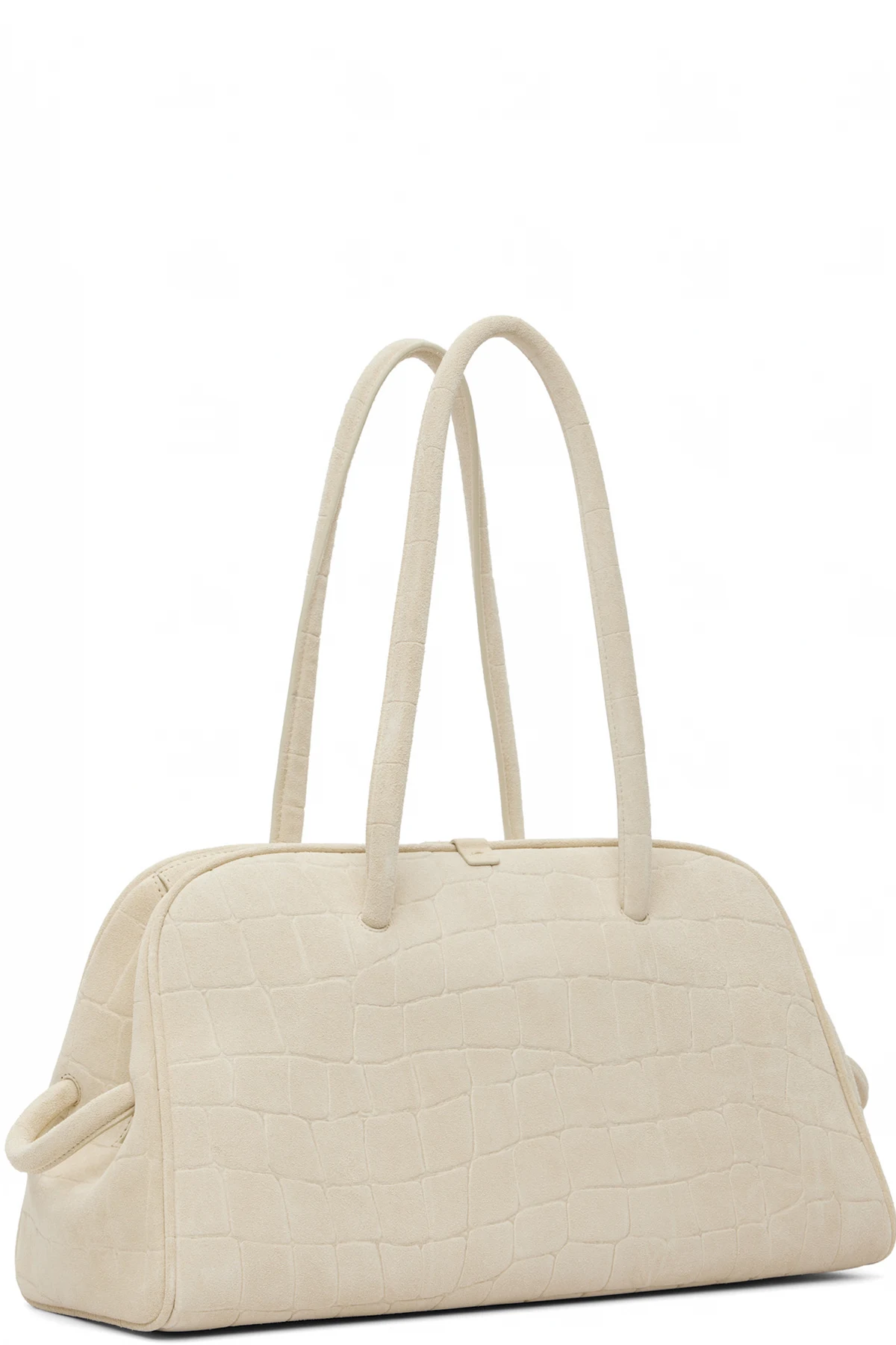 Croc-embossed calfskin suede top handle bag.