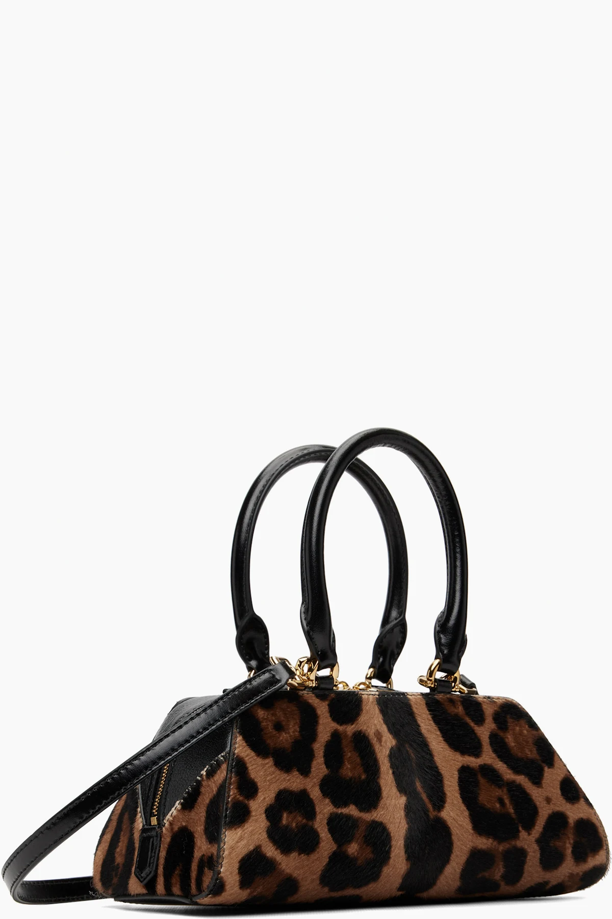 · Grained buffalo leather trim and leopard pattern throughout