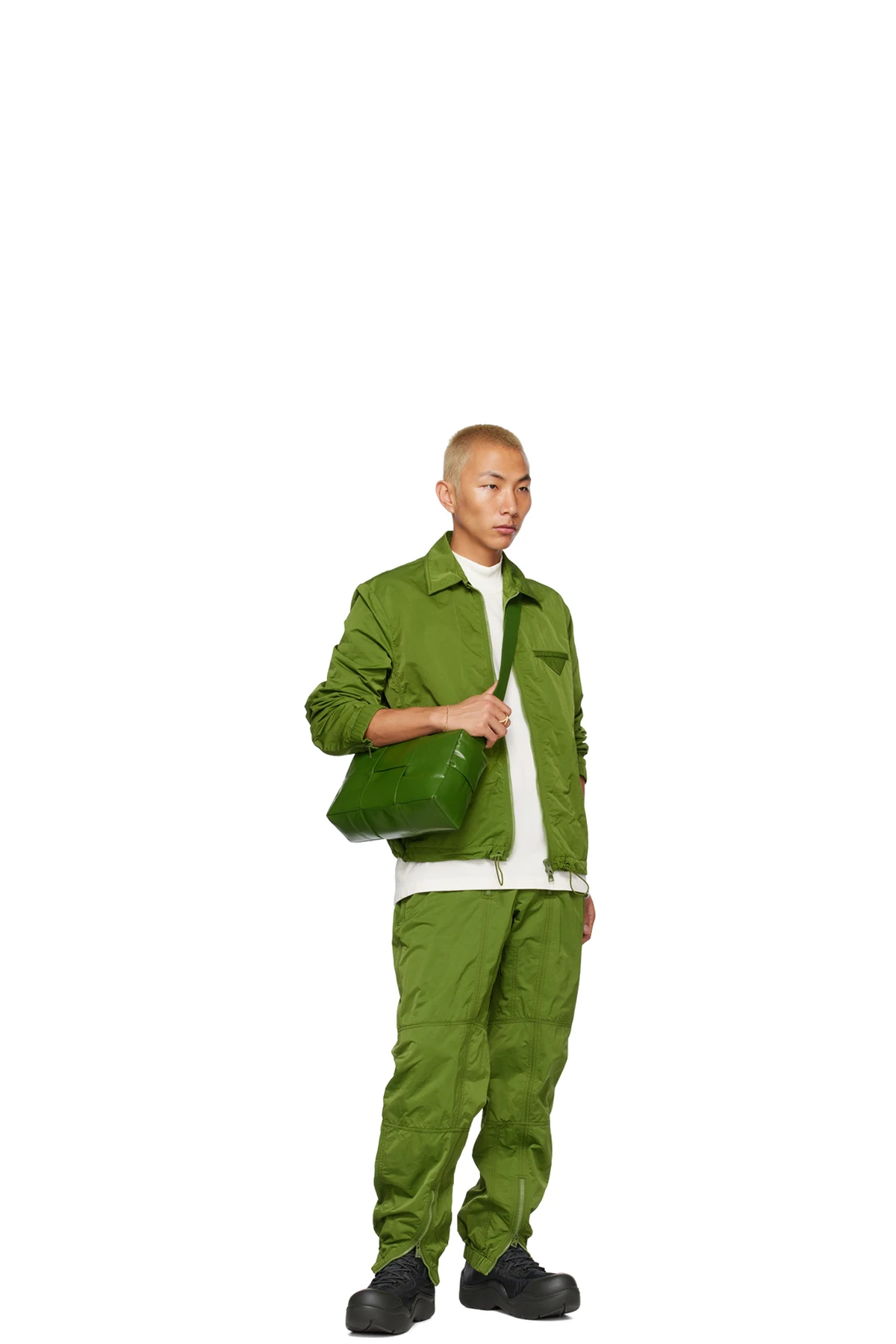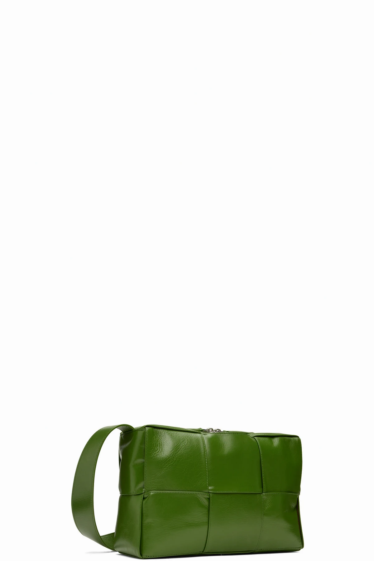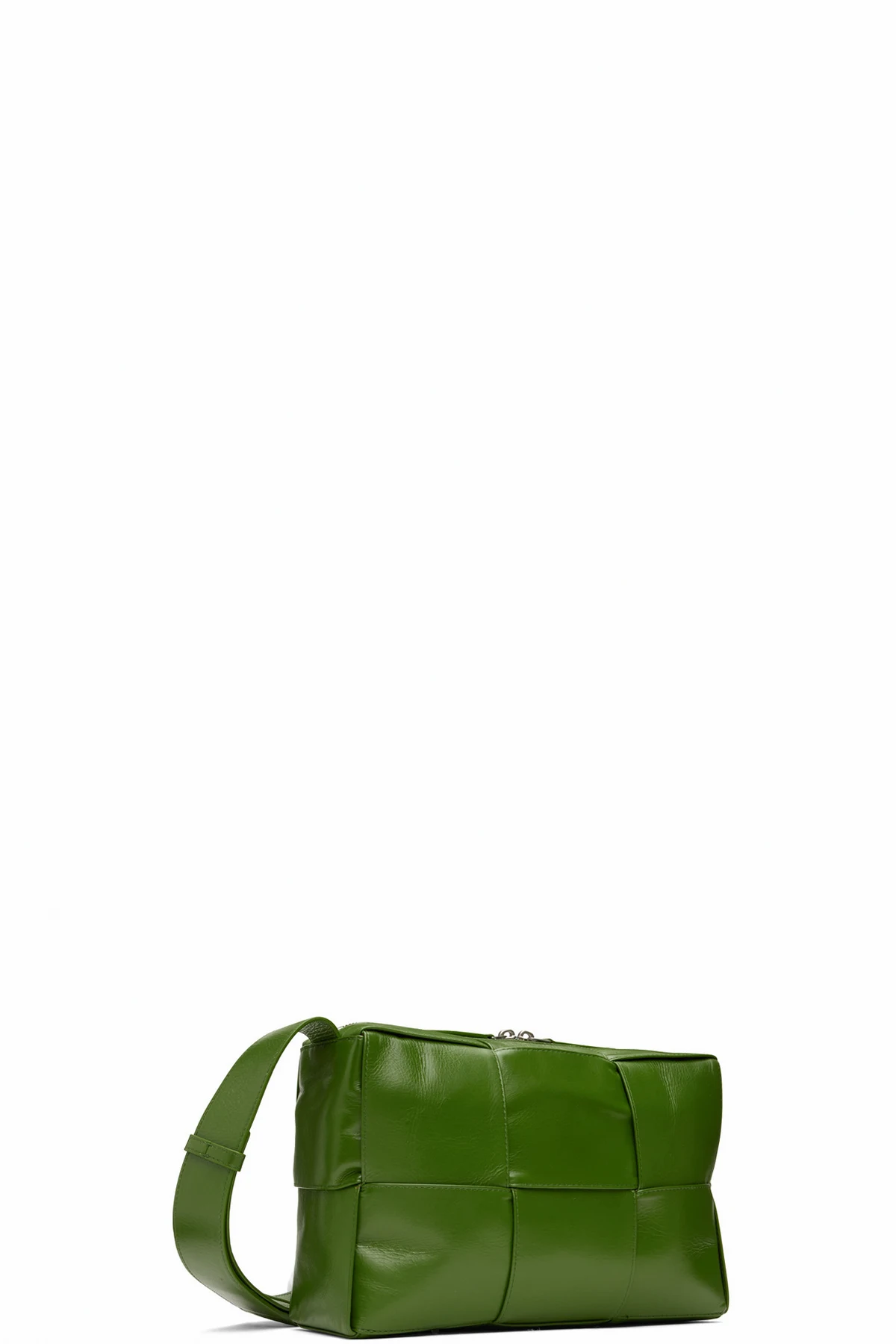 Intreccio-woven crinkled calfskin messenger bag in green.