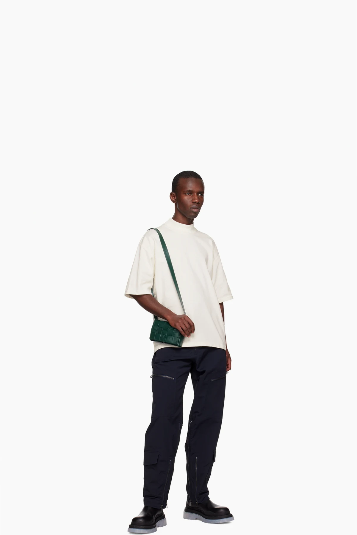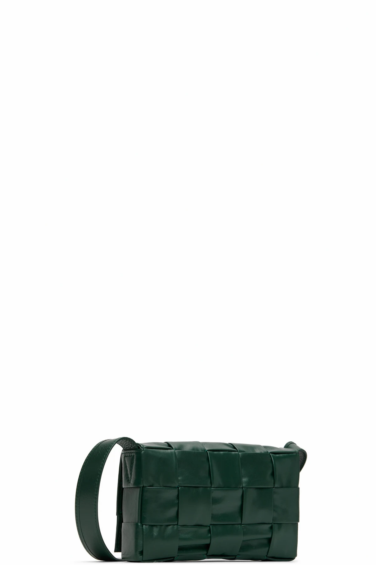 Intreccio-woven grained calfskin messenger bag in green.
