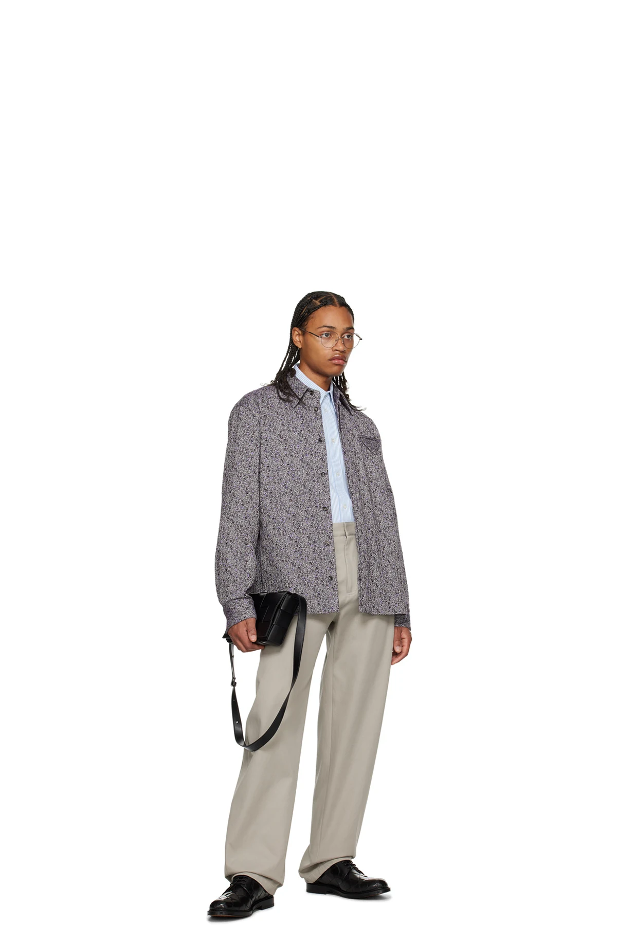 Intreccio-woven grained nappa calfskin messenger bag in black.