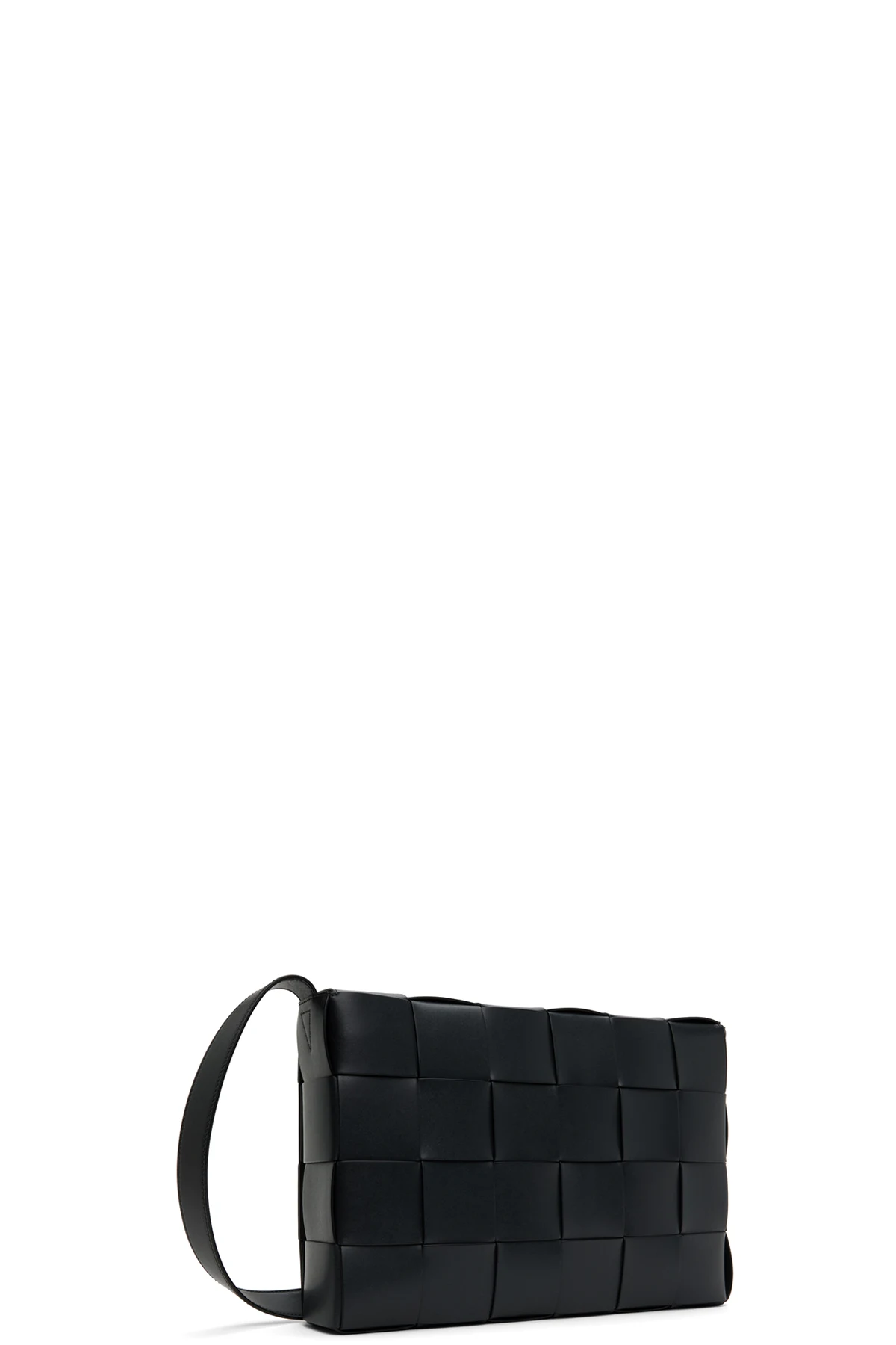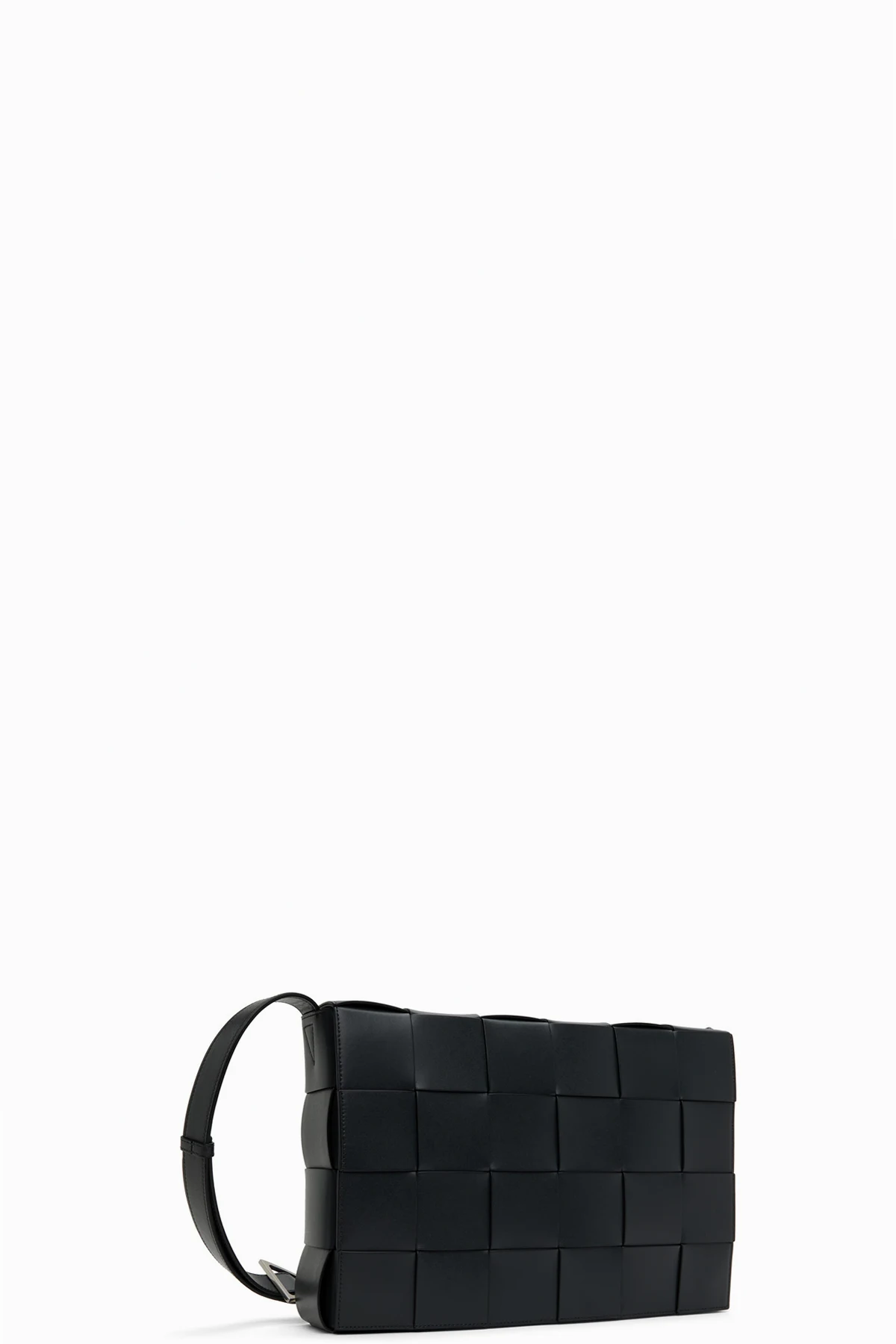 Intreccio-woven buffed calfskin messenger bag in black.