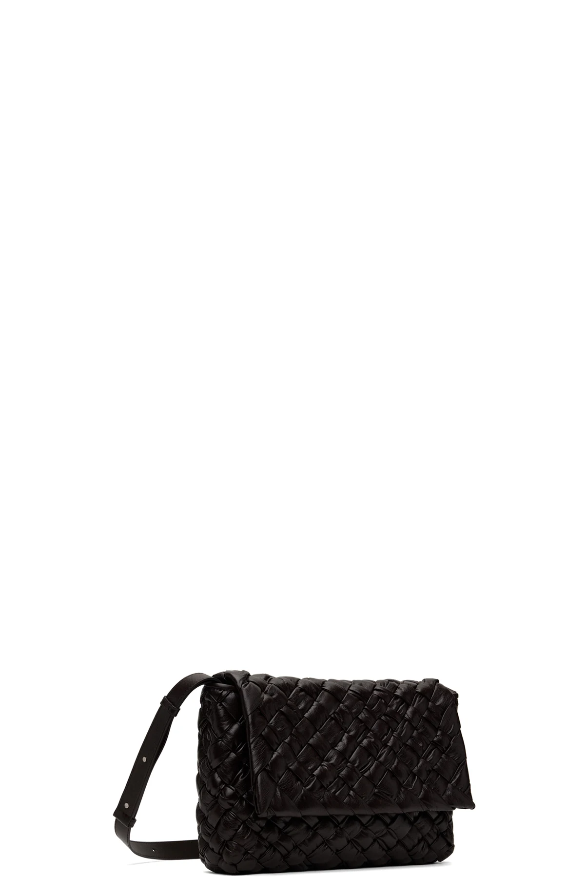 Intrecciato-woven grained calfskin bag in brown.