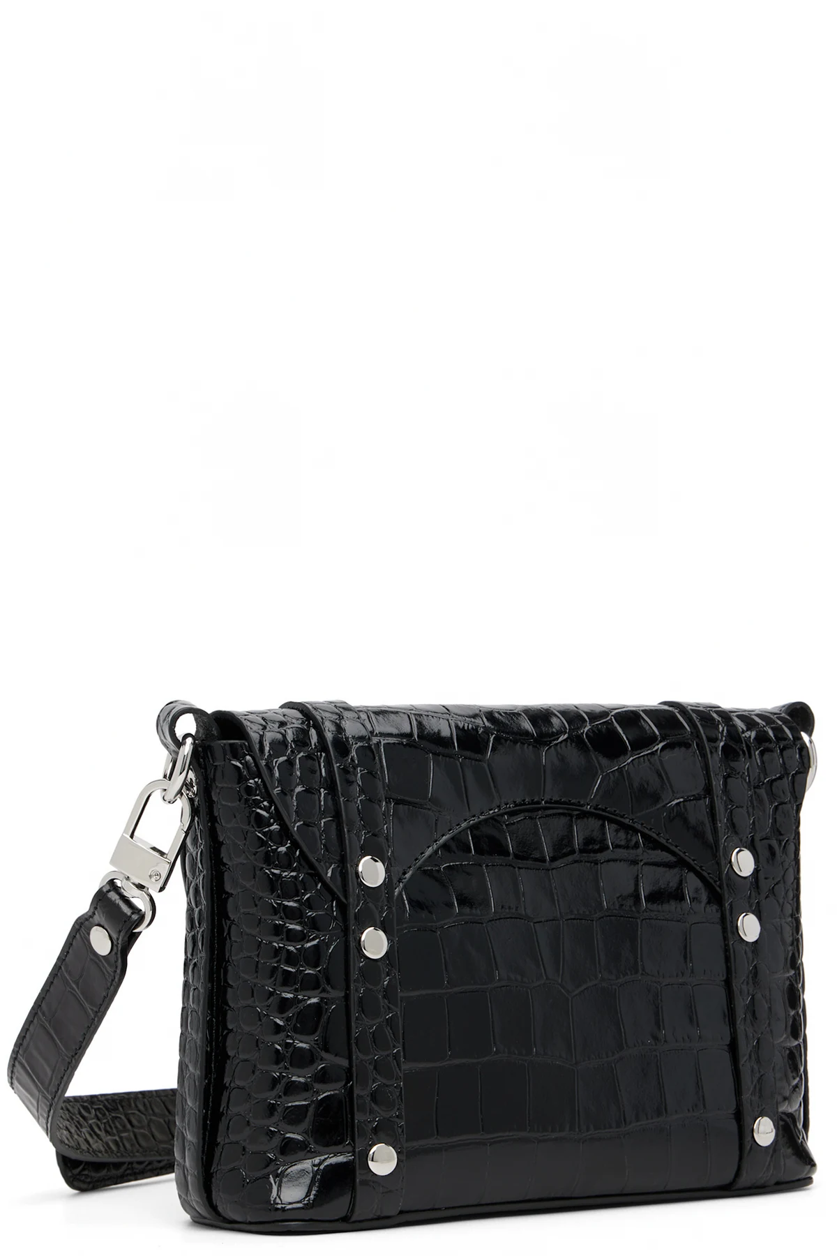 Croc-embossed polished calfskin messenger bag.