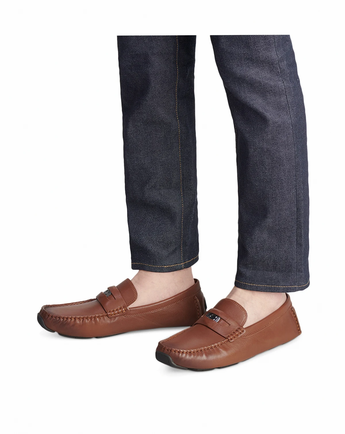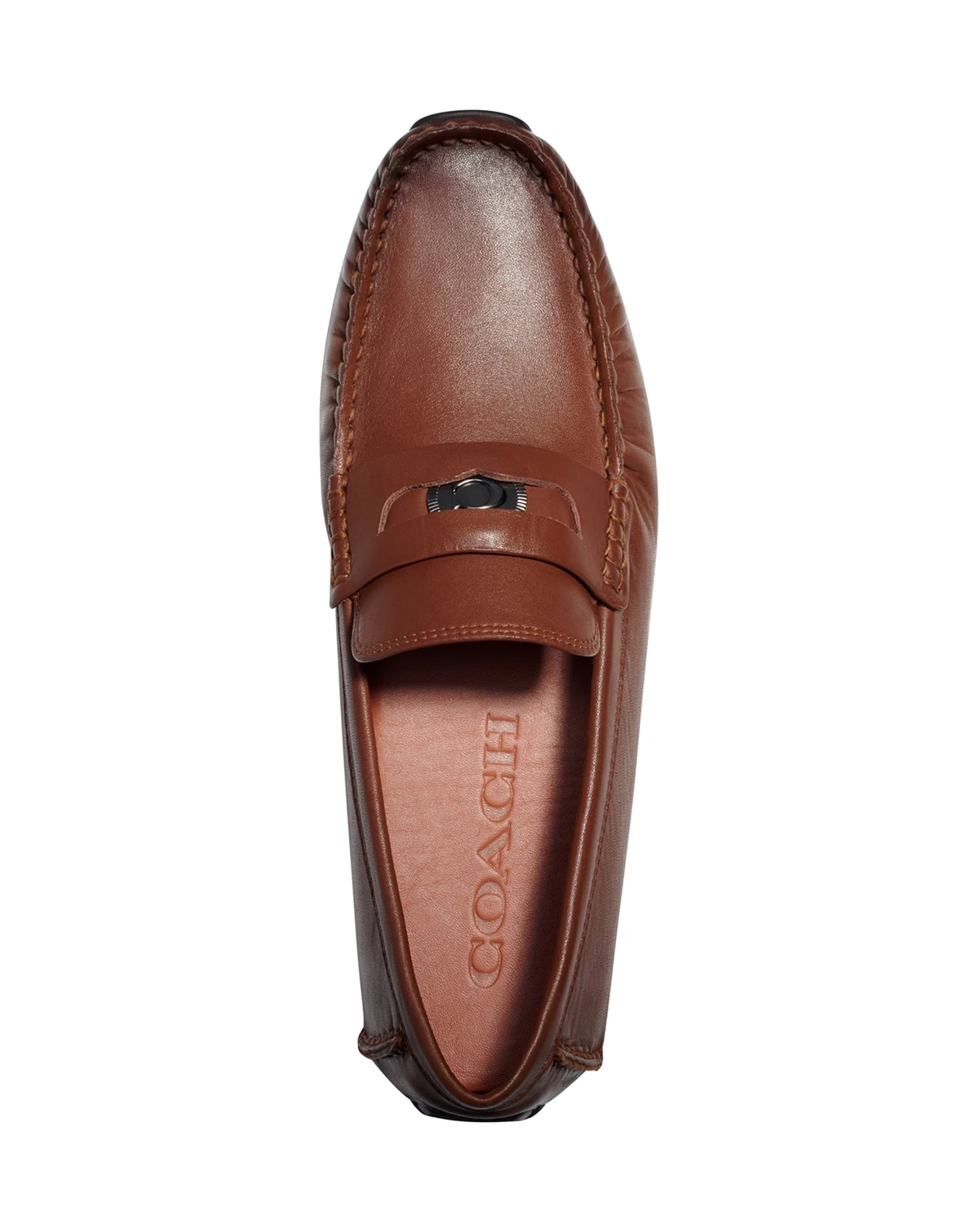 Suave, gentleman fashion is on full display with the smooth leather upper and 'C' logo coin of these driver loafers by COACH.